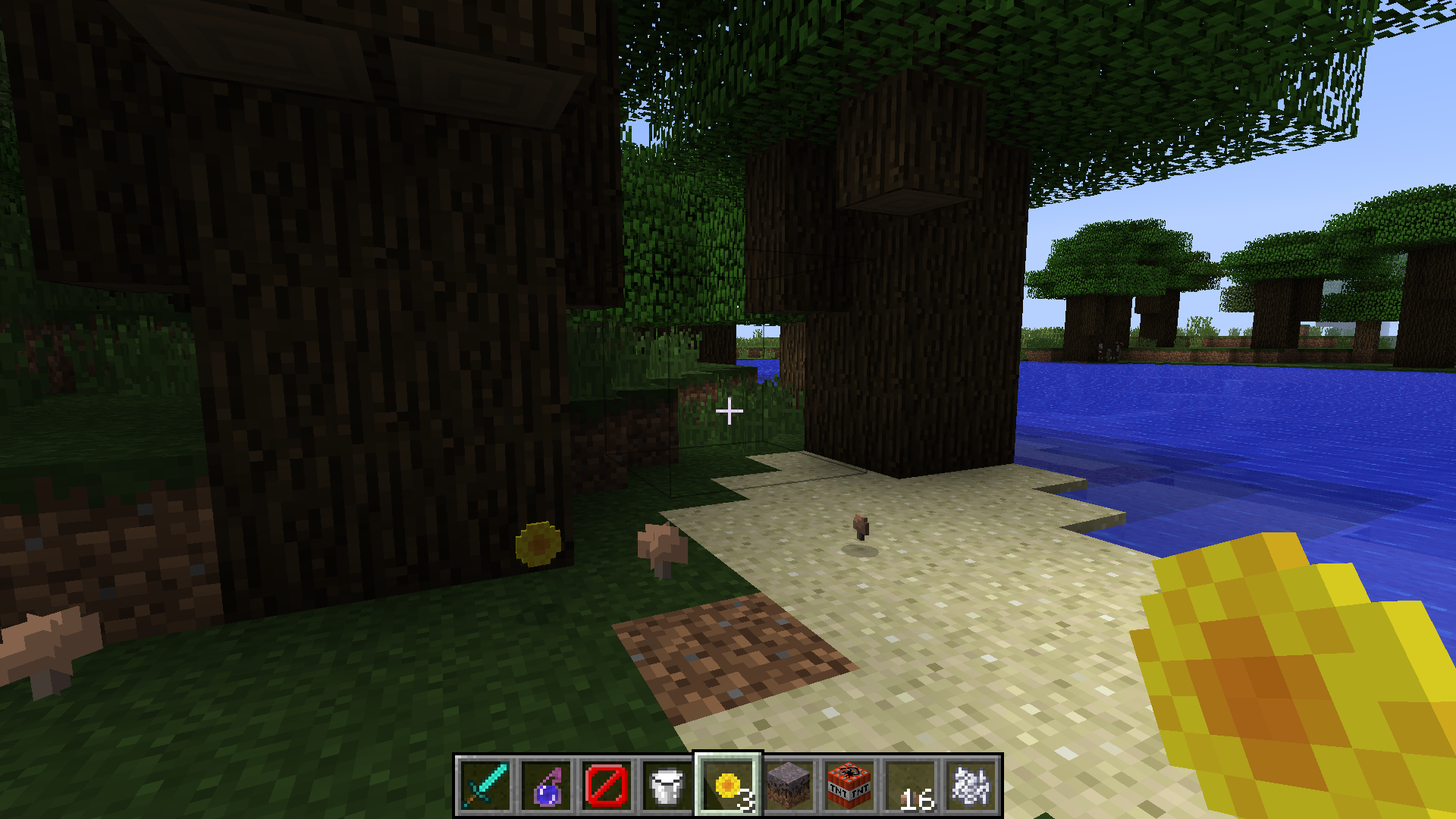 Perform this command on grass block with sky above: