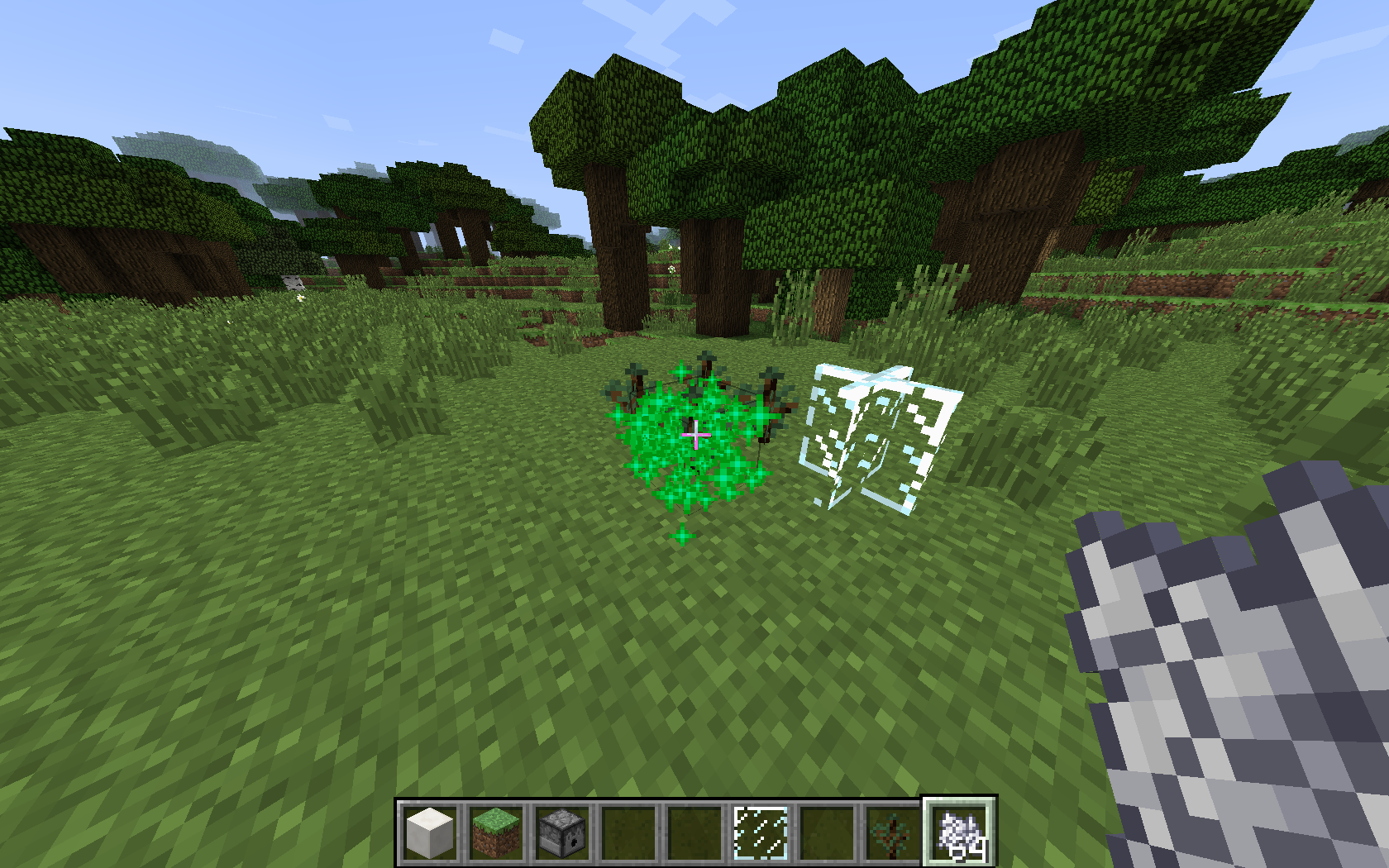 On first 2 screenshots there are transparent blocks around saplings. So trees will never grow. On the 3rd screen there are no blocks around and the tree grows normally. This bug appeared in 1.7.2 update and still works