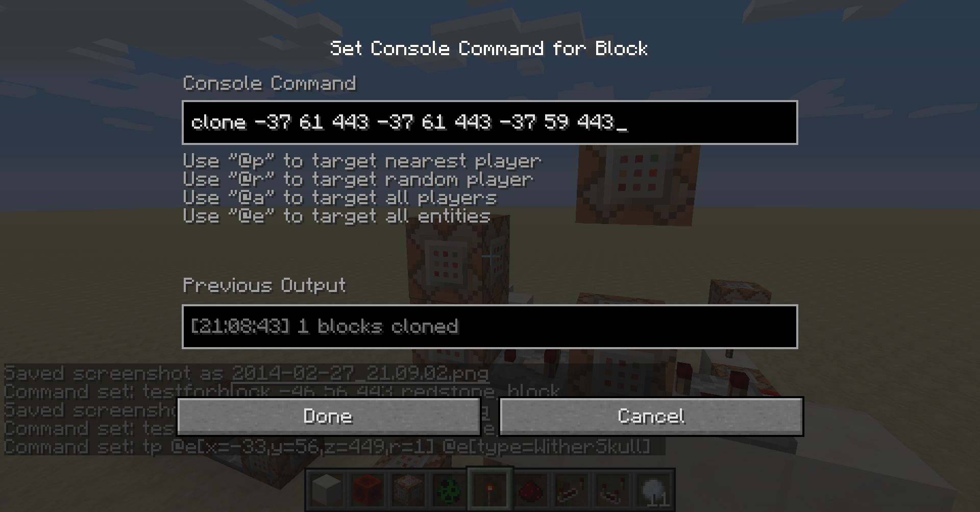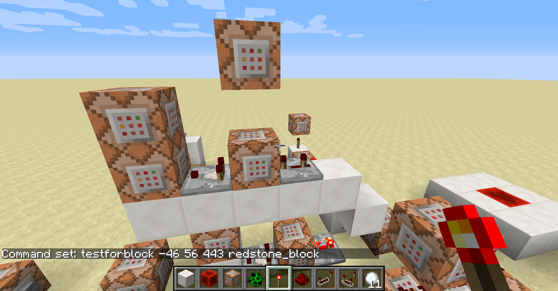 The third is a command that clone the command block on the top, to where the testfor command block is.