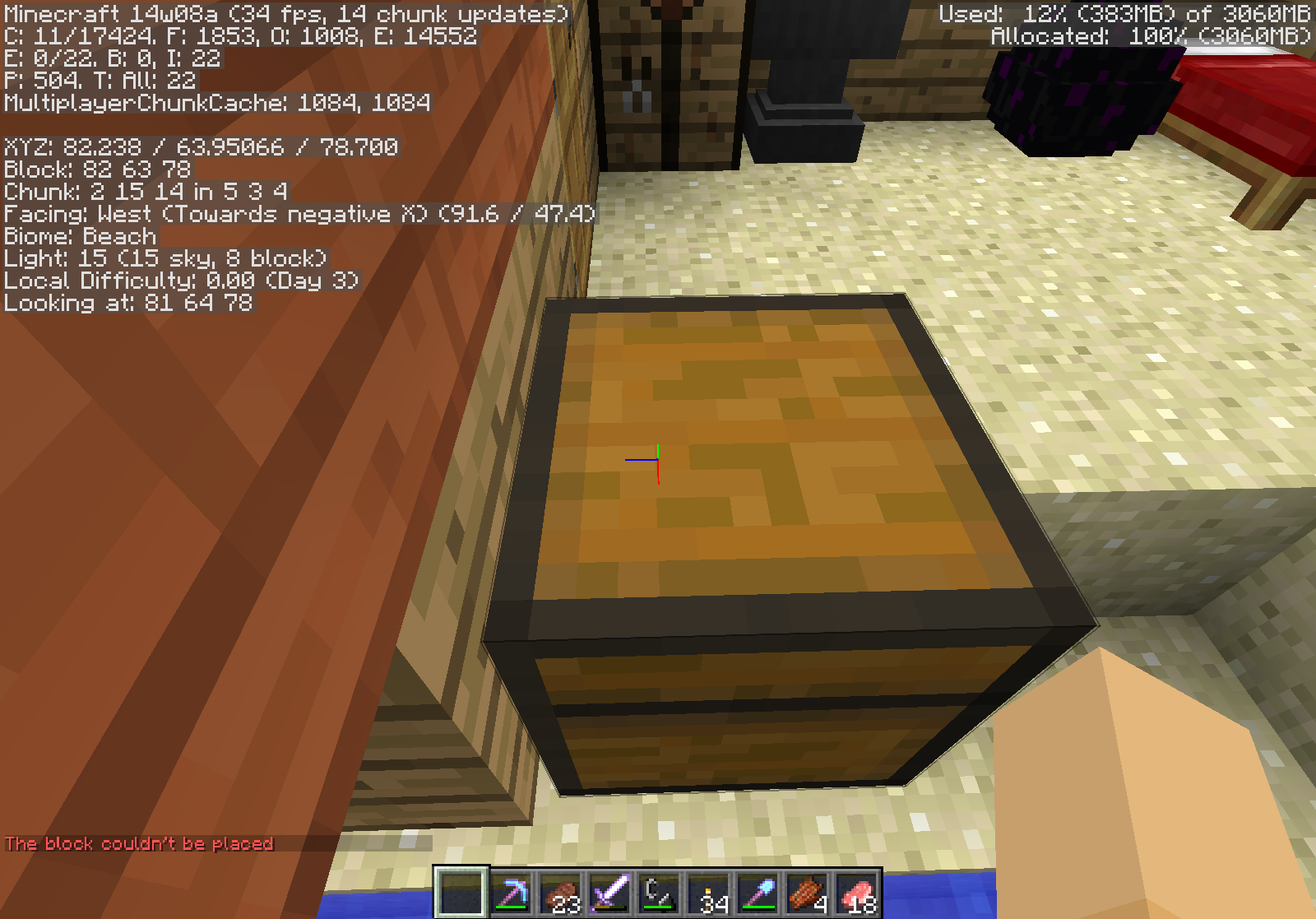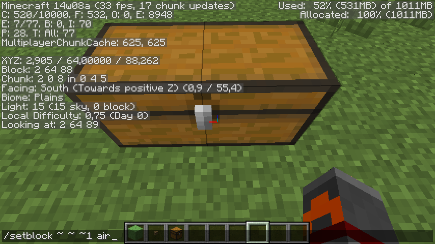 When using /setblock to place air blocks, the game will state "The block couldn't be placed" in red text, despite clearly working. On the right of the chest in the attachment was another chest (to make it a large chest), but the error message appeared after I removed it by /setblock-ing down air in an area with a chest.