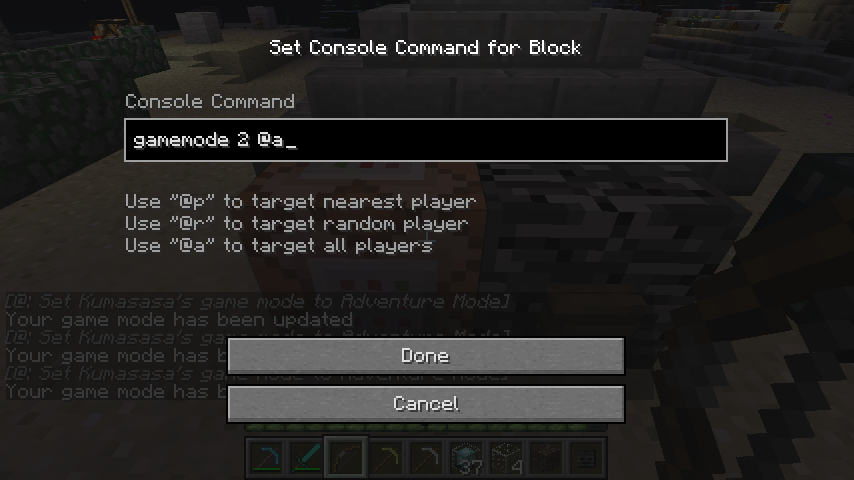 3. Change the command block's command to /gamemode 2 @a