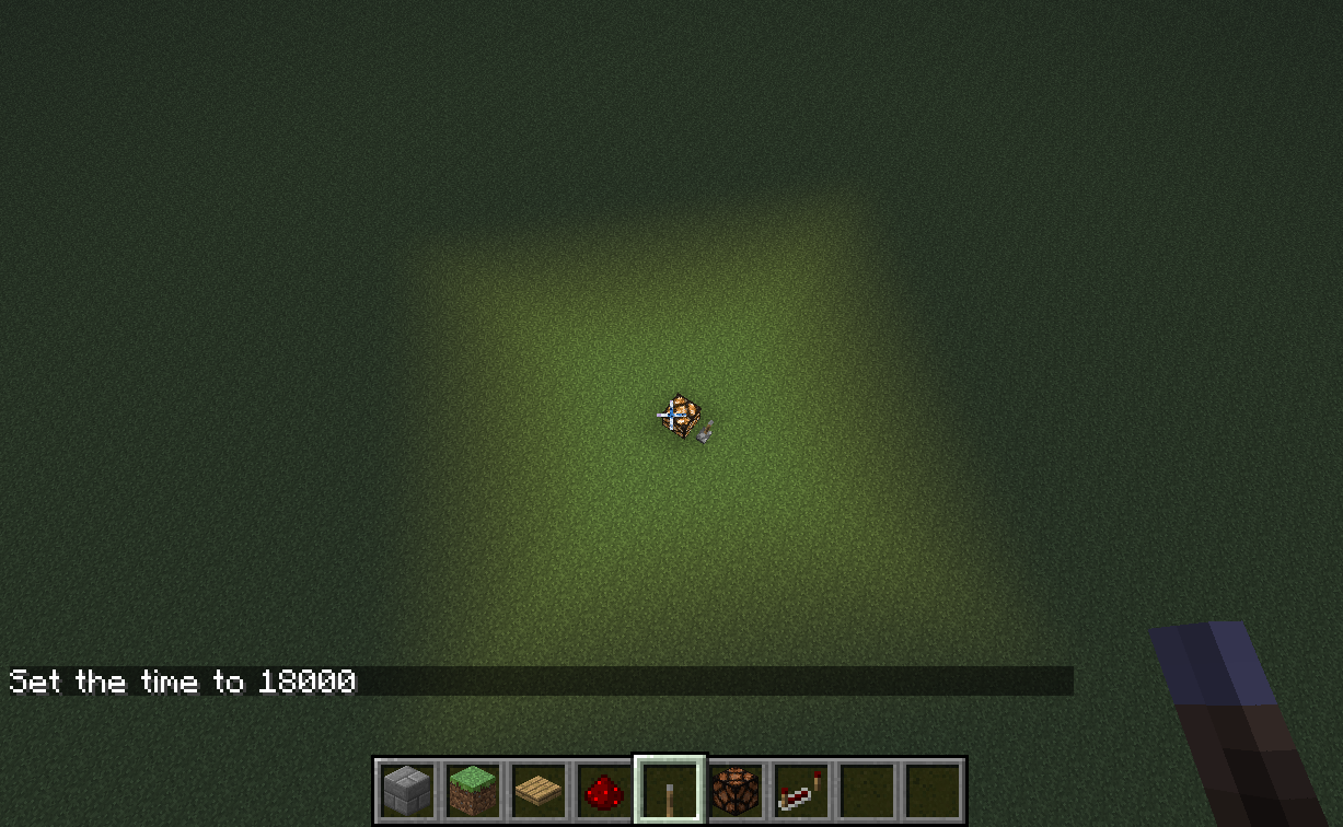 Make a superflat world, set time to 18000, place a Redstone lamp and power it with a lever (because Redstone torches make light and buttons don't constantly power them) and reload the world by saving and quitting and starting the world again.