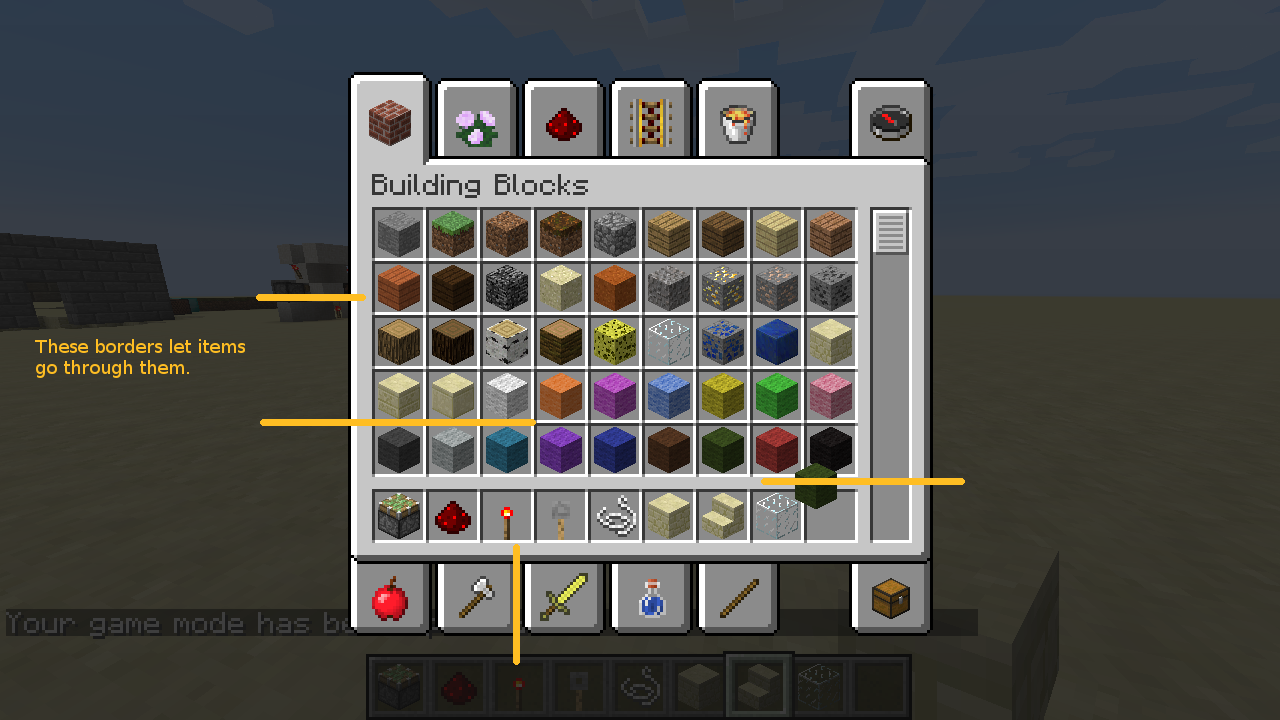 In creative mode, dragging and dropping an item on any border of the inventory drops the item on the ground, rather than preventing the click.