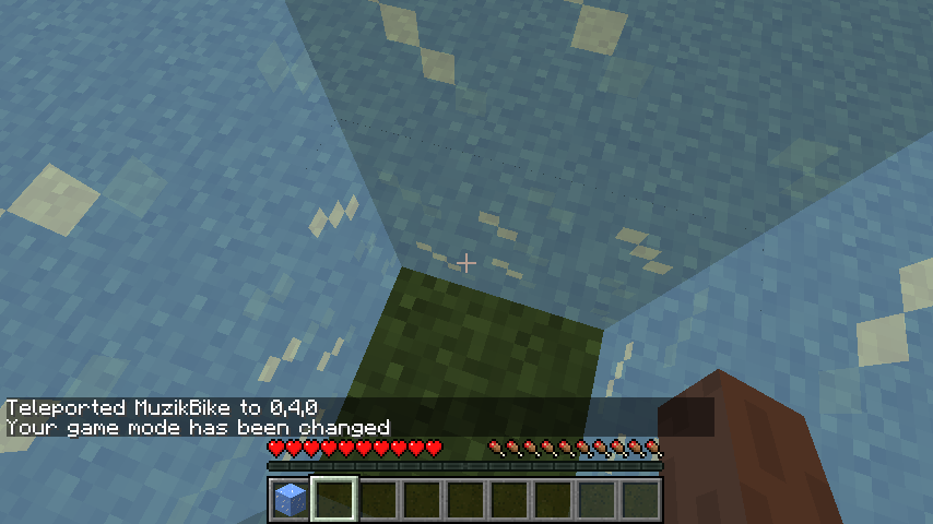 Summon a large block of ice and teleport inside it by using the commands provided below.