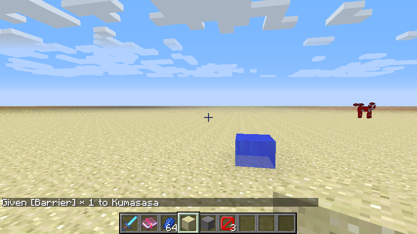 I was testing the new snapshot, my new skin using the new system, and I went to the point where I wanted to test the barrier blocks. So I type /give Fullzop minecraft:barrier 1. Everything is normal at this point.