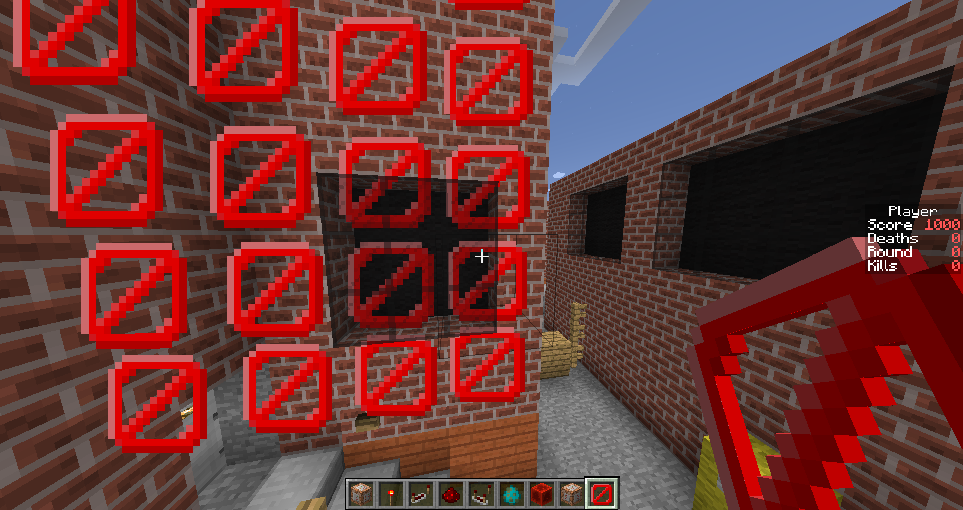 When there is stained glass behind a barrier block, the logo for the barrier block is tinted depending on what color glass is behind it as if the image was the other side of the stained glass block. This doesn't happen with unstained glass.