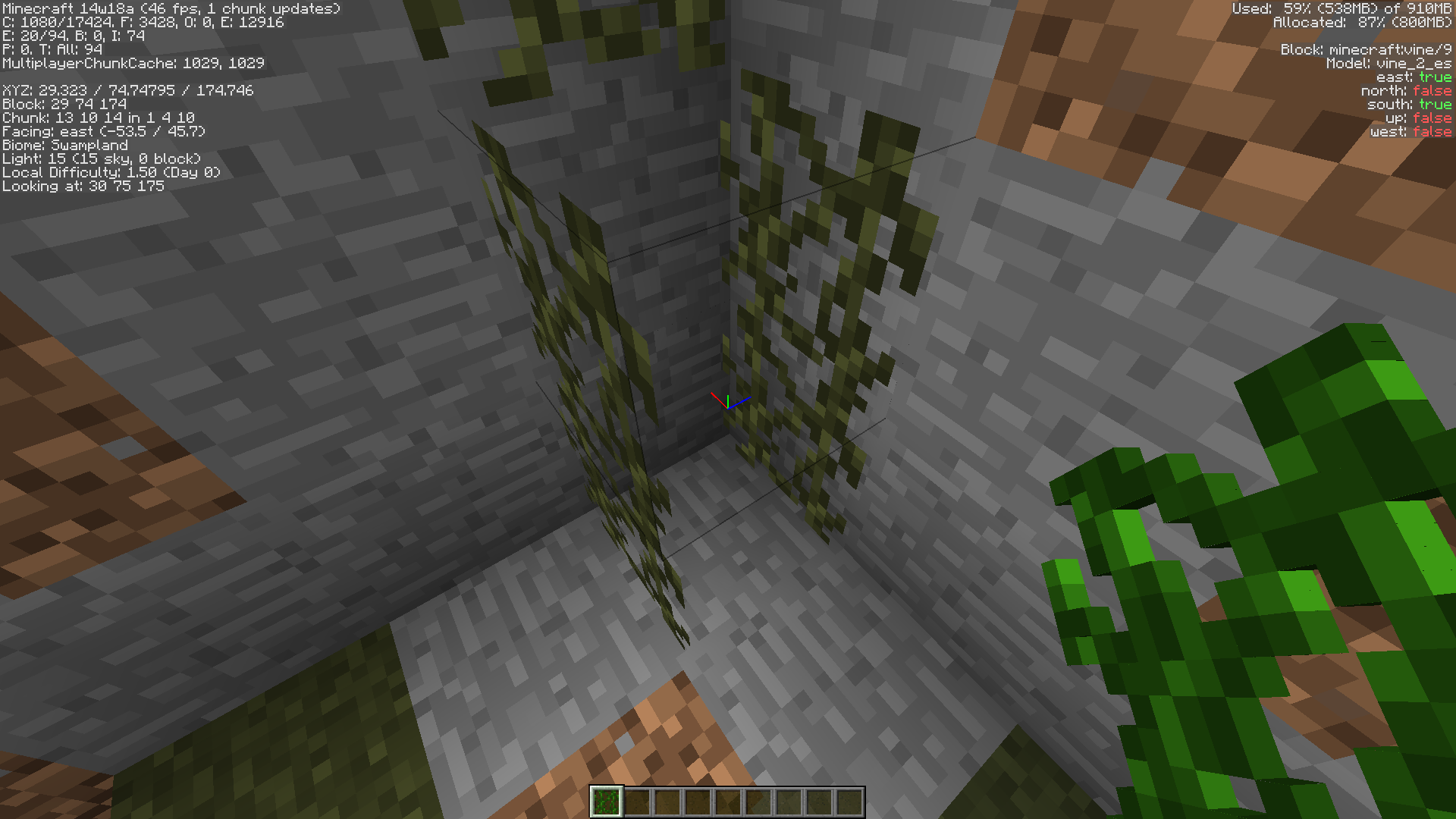 Reverting to 14w08a reverses the effect, causing vines to render normally.
