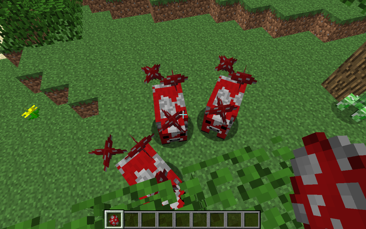 The back right mushroom on all mooshrooms is floating off the edge making it appear to be in midair.