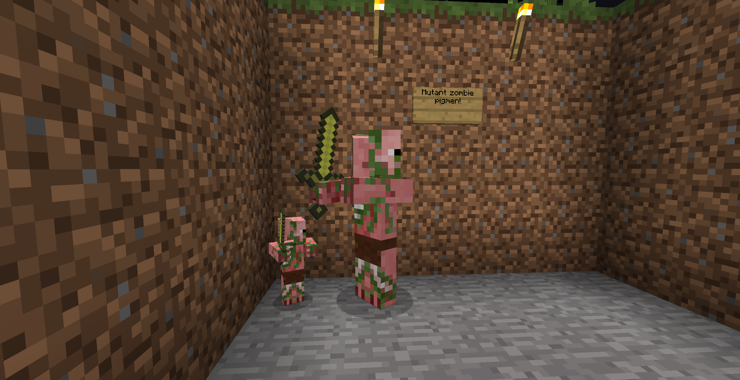 /summon PigZombie ~ ~ ~ {IsVillager:1}, you will get a zombie pigman with a flesh head with no skull. If you're going to have something like this in the game maybe you could either remove it or change their model and add the feature of zombie pigmen infecting villagers. But anyways if you do this command, it will spawn a mutated zombie pigman. It also works with babies, use that same command and add IsBaby:1 to it.