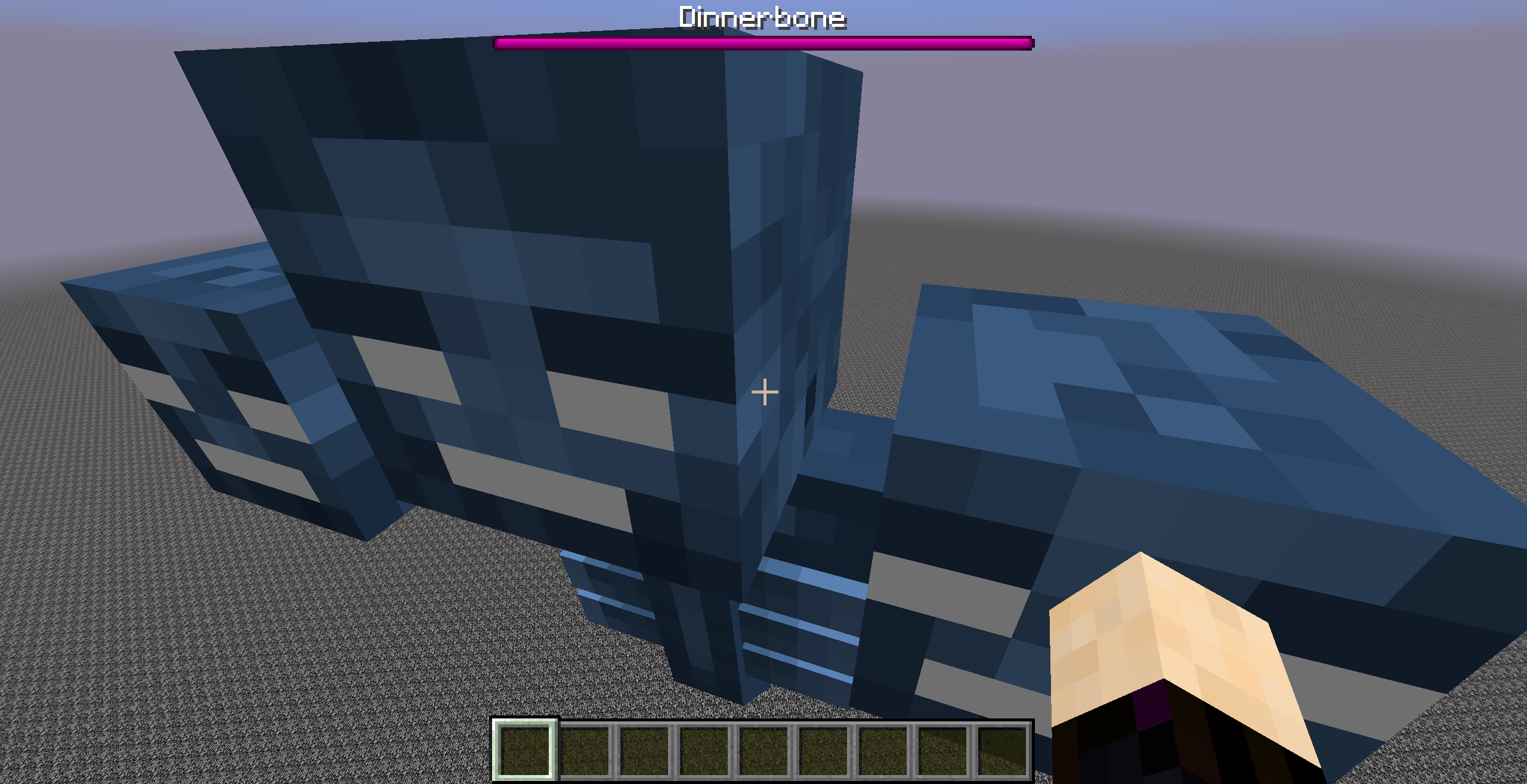 OMG Witherzilla!!!!, It's giant, it's invulnerable it's unable to move, and it's not aggressive. An ender dragon would be more like the ender dragonfly compared to this guy, a block not even be one pixel, and I would be like the size of a flea. If you want that huge wither boss, do /summon WitherBoss ~ ~ ~ {Invul:30000,CustomName:Dinnerbone}. This works simply because since the Wither is named Dinnerbone, its growth is reversed and instead of turning it into a regular sized wither, starts out as a humungous invulnerable wither at full health. Credit to SimplySarc who discovered the glitch.