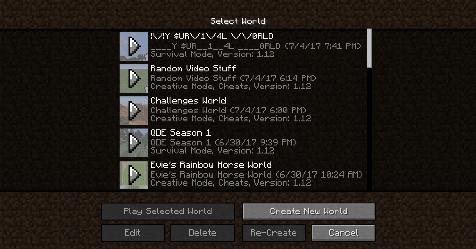Play button appears over every world