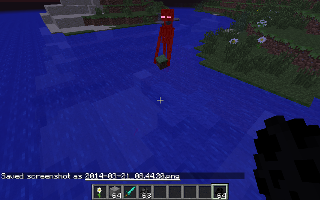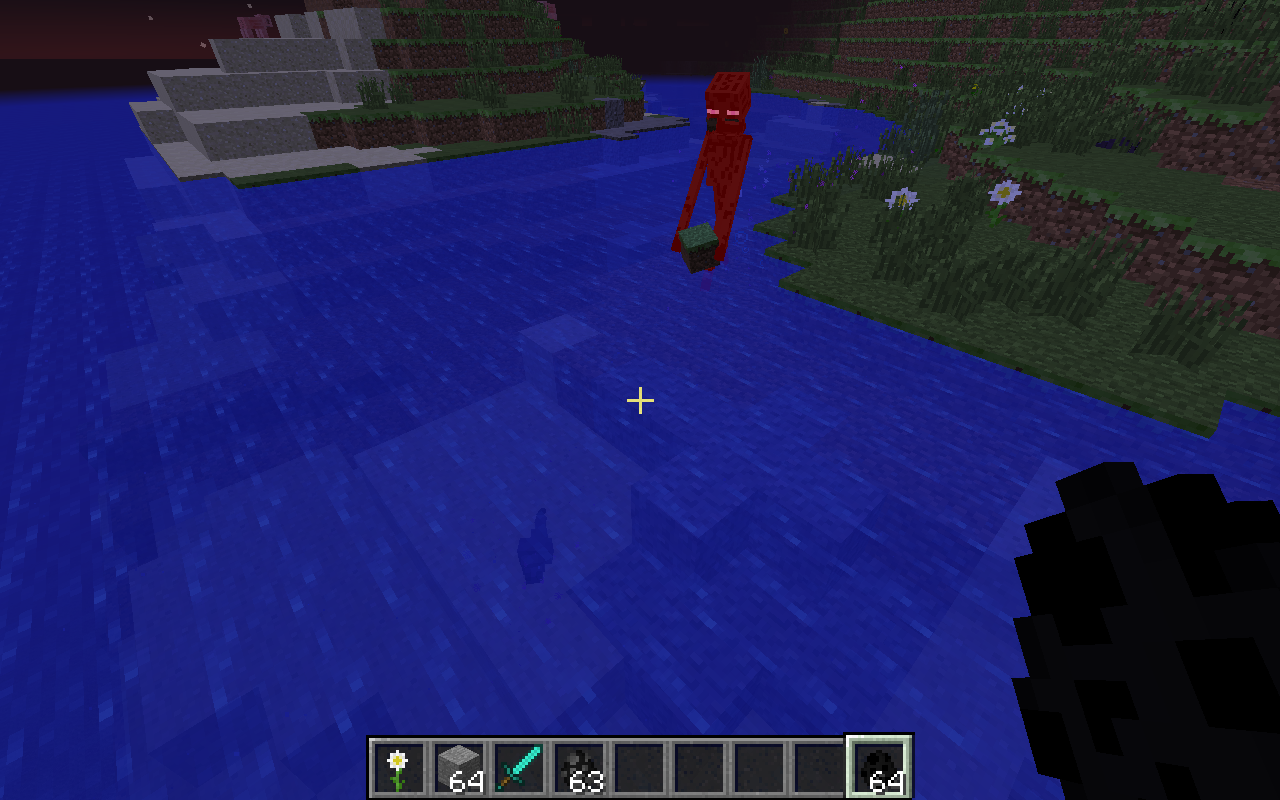 If an endermite it pursuing the player and they go into water, not only will they sink to the bottom and drown, but enderman will follow them. The enderman starts to take damage wanting to kill the endremite. However, once the endermite is killed the enderman will stand in the water getting hurt, standing there not moving, until provoked or a random teleport.
