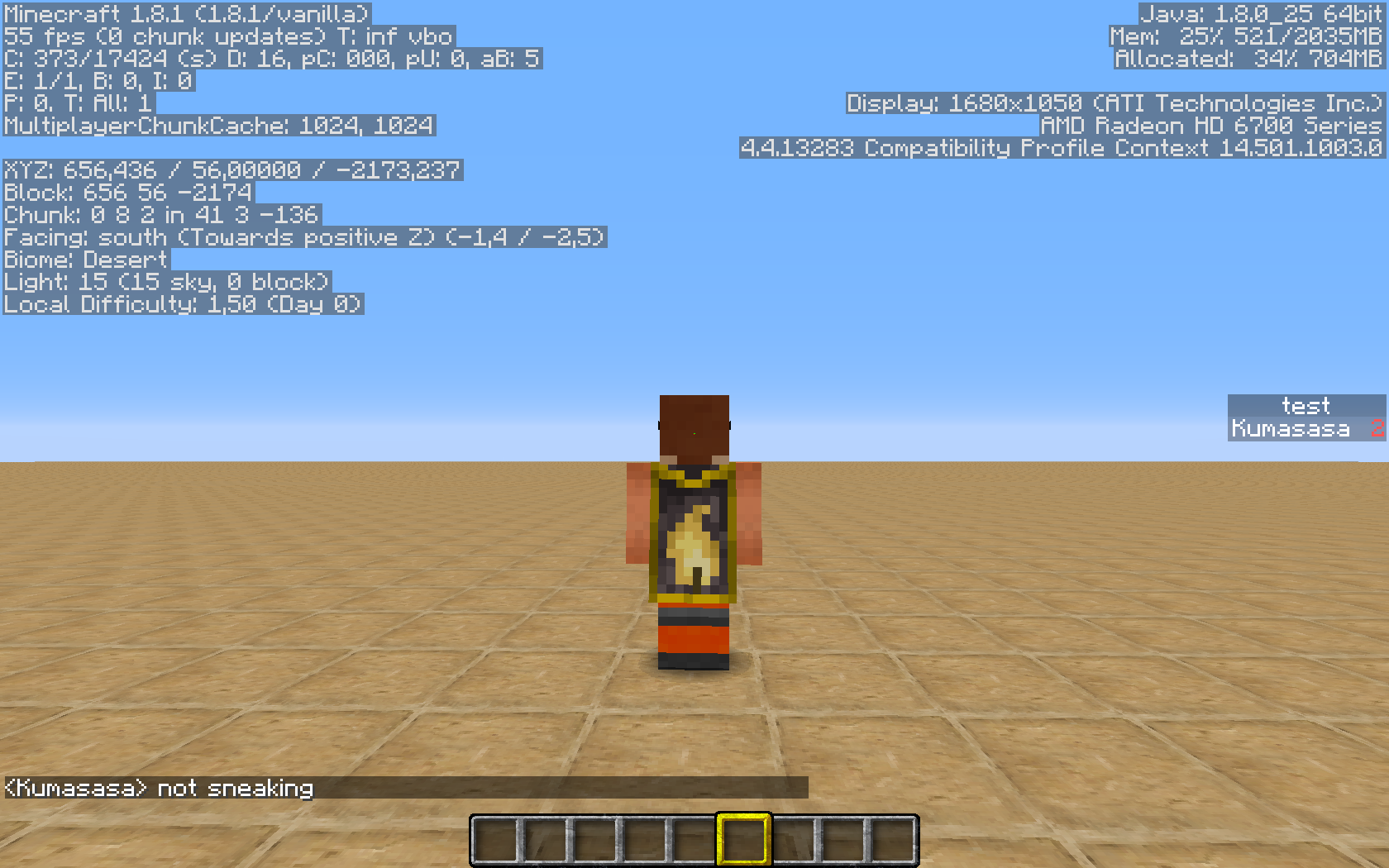Compare the top border of the cape with the horizon - the cape changes it's angle while sneaking but not the vertical position.