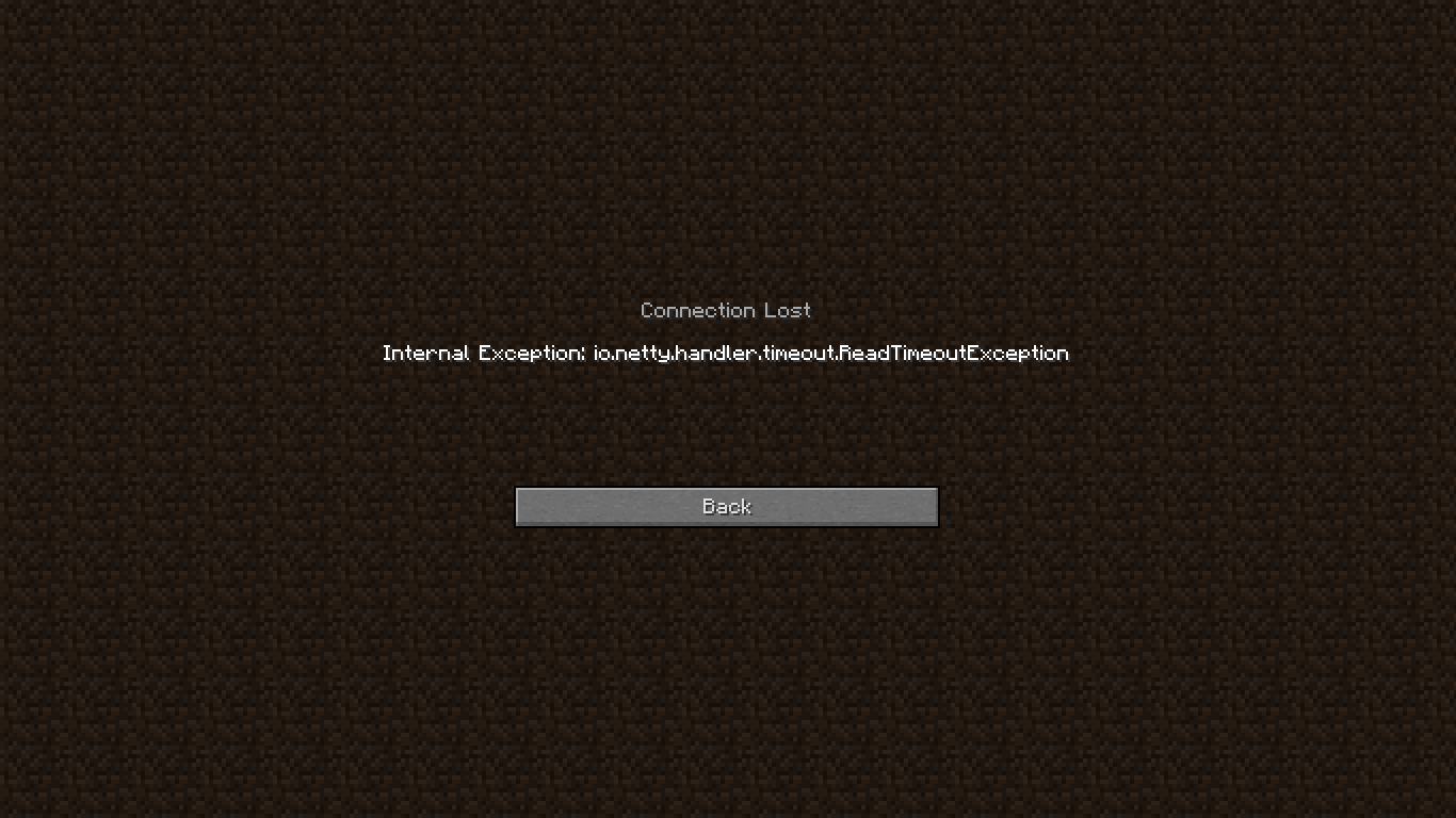 When I join a server, the map loads really slow like, so I end up falling into the void before anything happens. Sometimes servers allow me to use fly, so I fly up to the loaded chunks of land. When the map's completely loaded, everyone's frozen in place, or walking at an extremely slow pace. I try to survey the area. It would allow me to walk around for a while, but then I get teleported back to the spawn point. Teleport. Teleport. Eternal damnation. Then it would lead me to an error screen with the above message (io.netty.handler.timeout.readtimeoutexception).