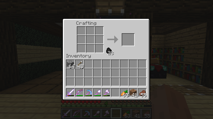 As you can see, I would like to turn these 28 coal into coal blocks, but middle clicking and dragging does not distribute the coal as it should, rather placing "ghost items" in stacks of 64 which disappear immediately after releasing the middle click button.