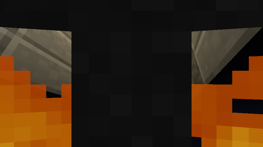 Look at the screenshots. This happened to me in creative mode. While standing in Lava and suffocating in a block at the same time, the screen doesn't go all the way black, but only a stripe in the middle (vertically) and at the top (horizontally).