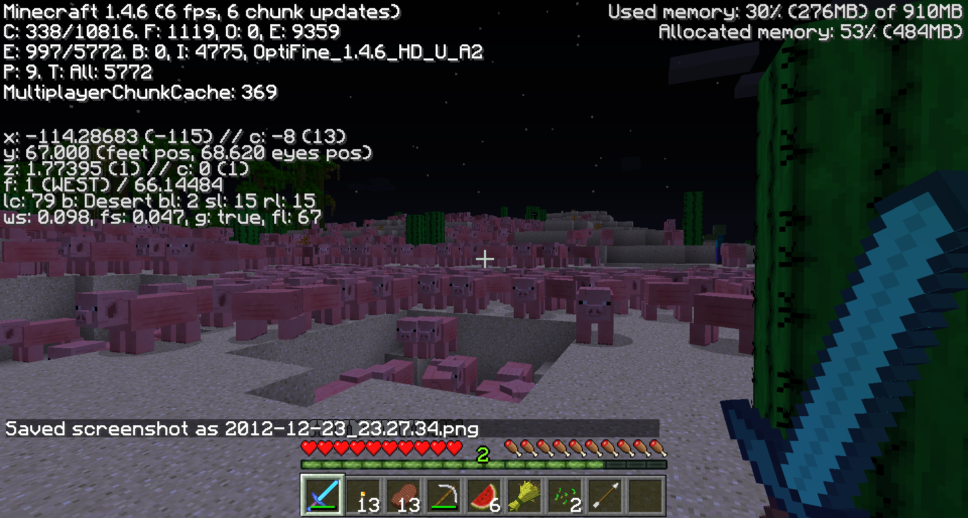 Made a single player world a lan, second player joined. Went to a desert and it was filled with pigs. They appeared to keep spawning. Due to performance with the amount of pigs I could not get a clear understanding of what was going on.