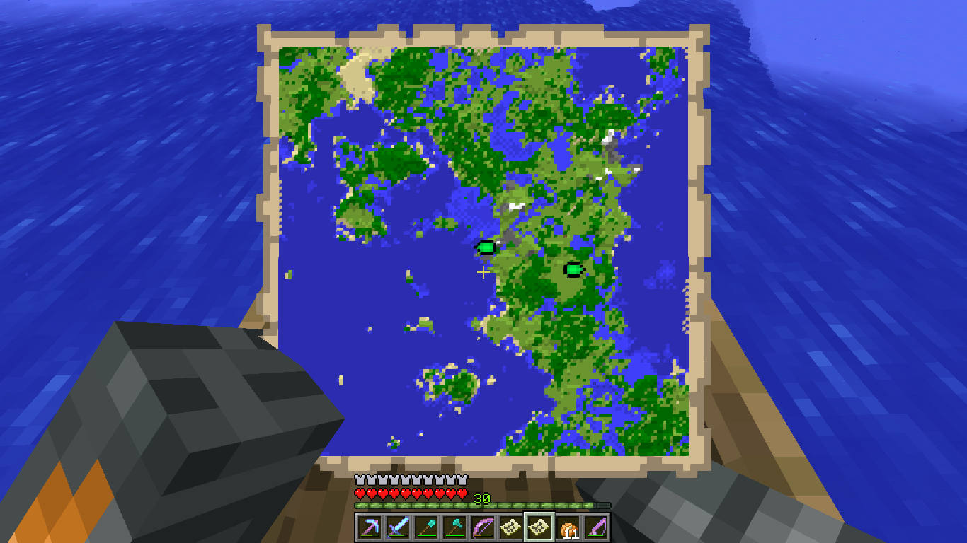 Sometimes, seemingly at random, the player's left hand will rise above the map and obscure a bit of the bottom left corner of the map. I have observed that this usually happens sometime after entering third-person view (F5) and returning to first person, but this does not always create this result and is not always the cause.