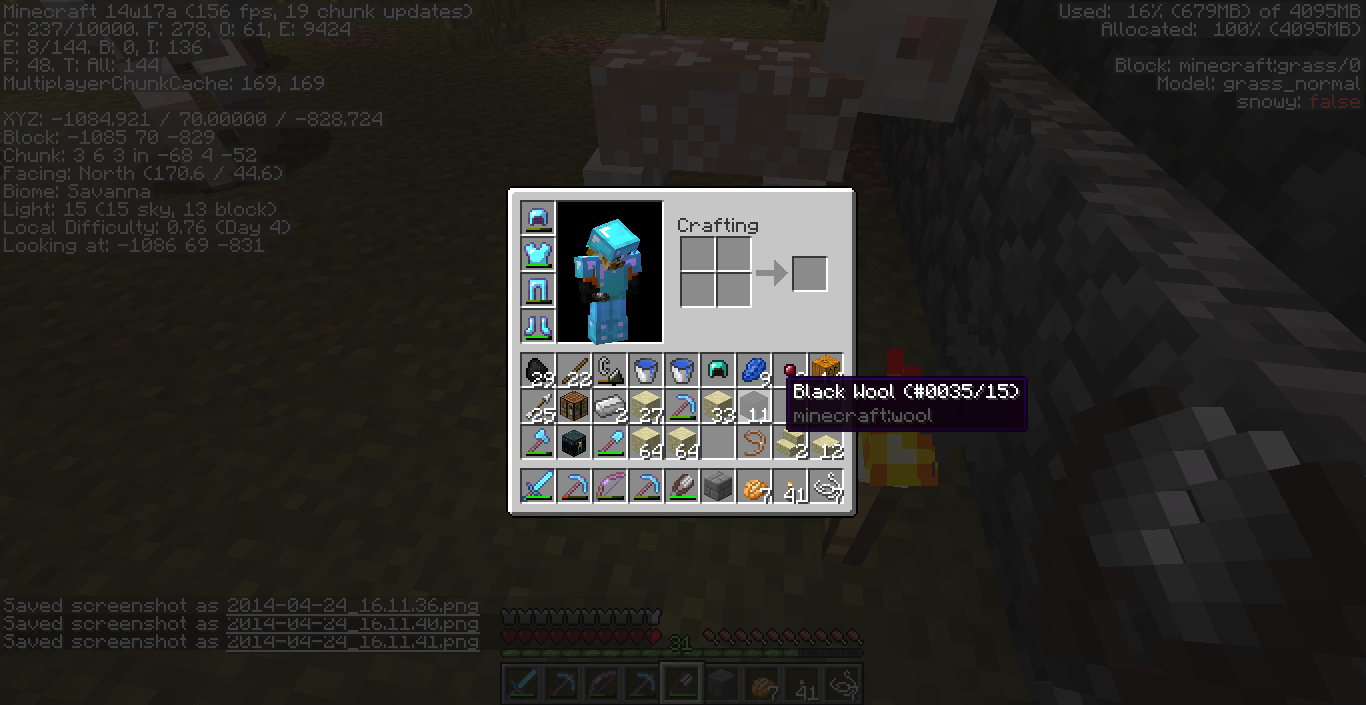 When I shear my white sheep the wool changes to id 15 (black). It shows up in the inventory as id15 and places as id 15. This is bizzare because when white sheep are sheared they are supposed to drop id 0 (white) wool... This bug affects other kind of sheep (black and grey) as their wool is turned into white and light grey wool respectively