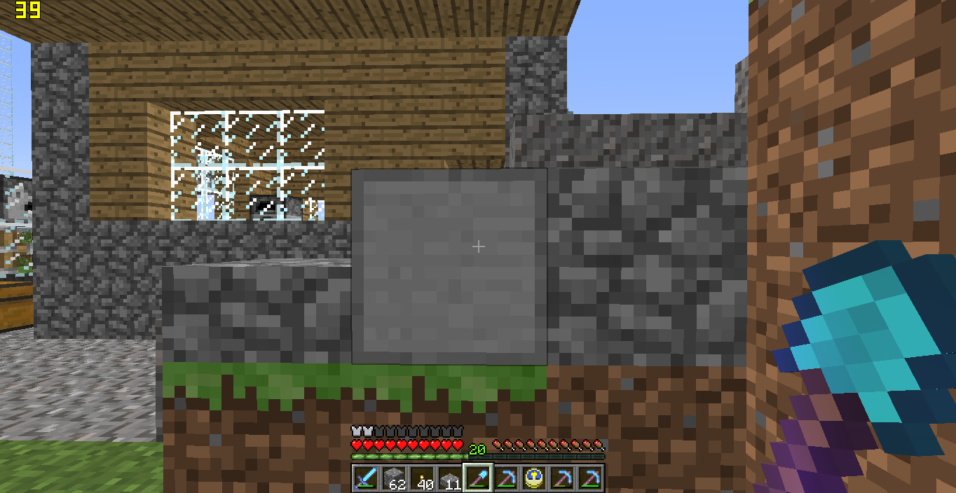 Double cobblestone half-slab blocks (ID: 43:3) looks like block ID 43:8 but when mined reveal themselves to be cobblestone half slabs.