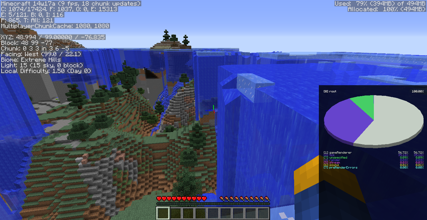 Here's a third screenshot: look at the Y coordinate, notice how it's at 99, close to 100, so I guess if you get higher, that's how high you'd be when you change the Y coordinate for how high Lava Oceans can be.