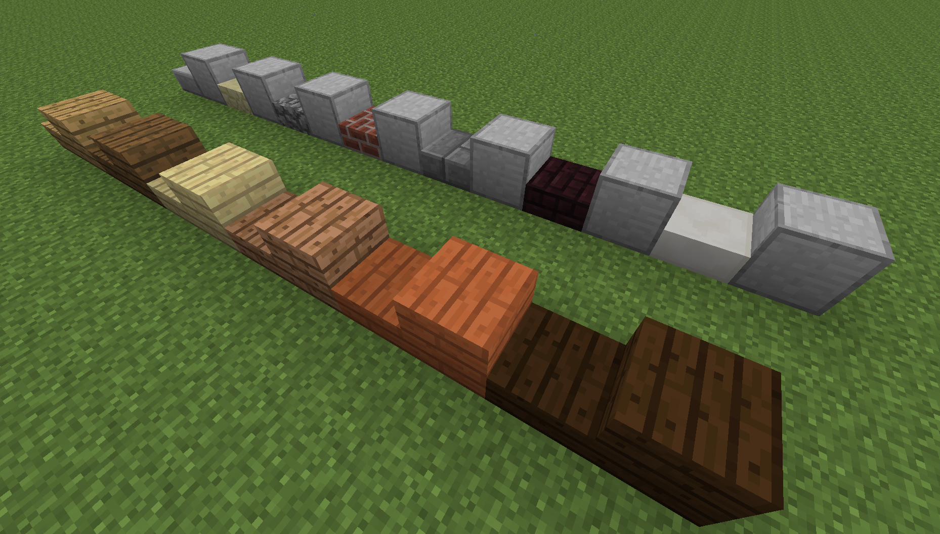 The images below show a single slab, then the corresponding double slab for every slab type in the game. The first image is from 14w17a, the second is 14w11b.