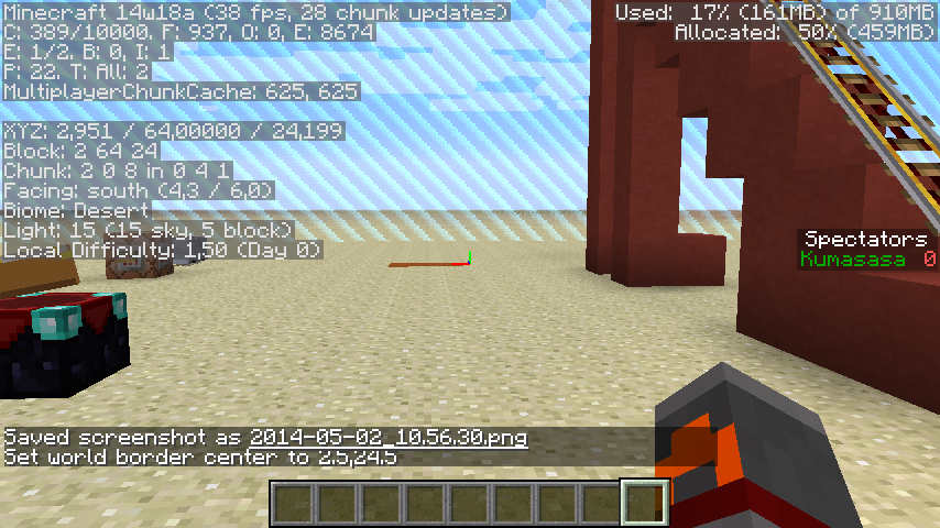 This bug did not show up on the snapshot 14w17a