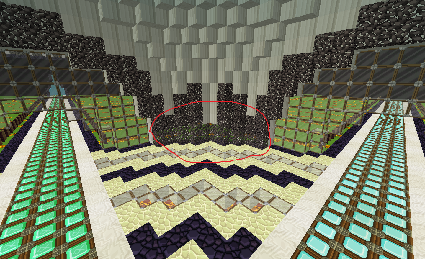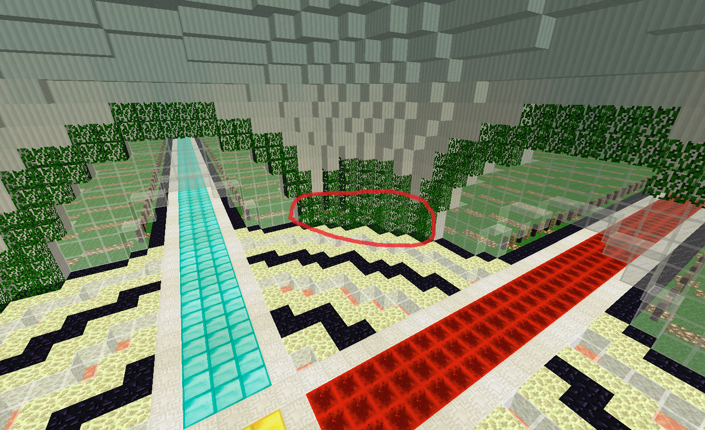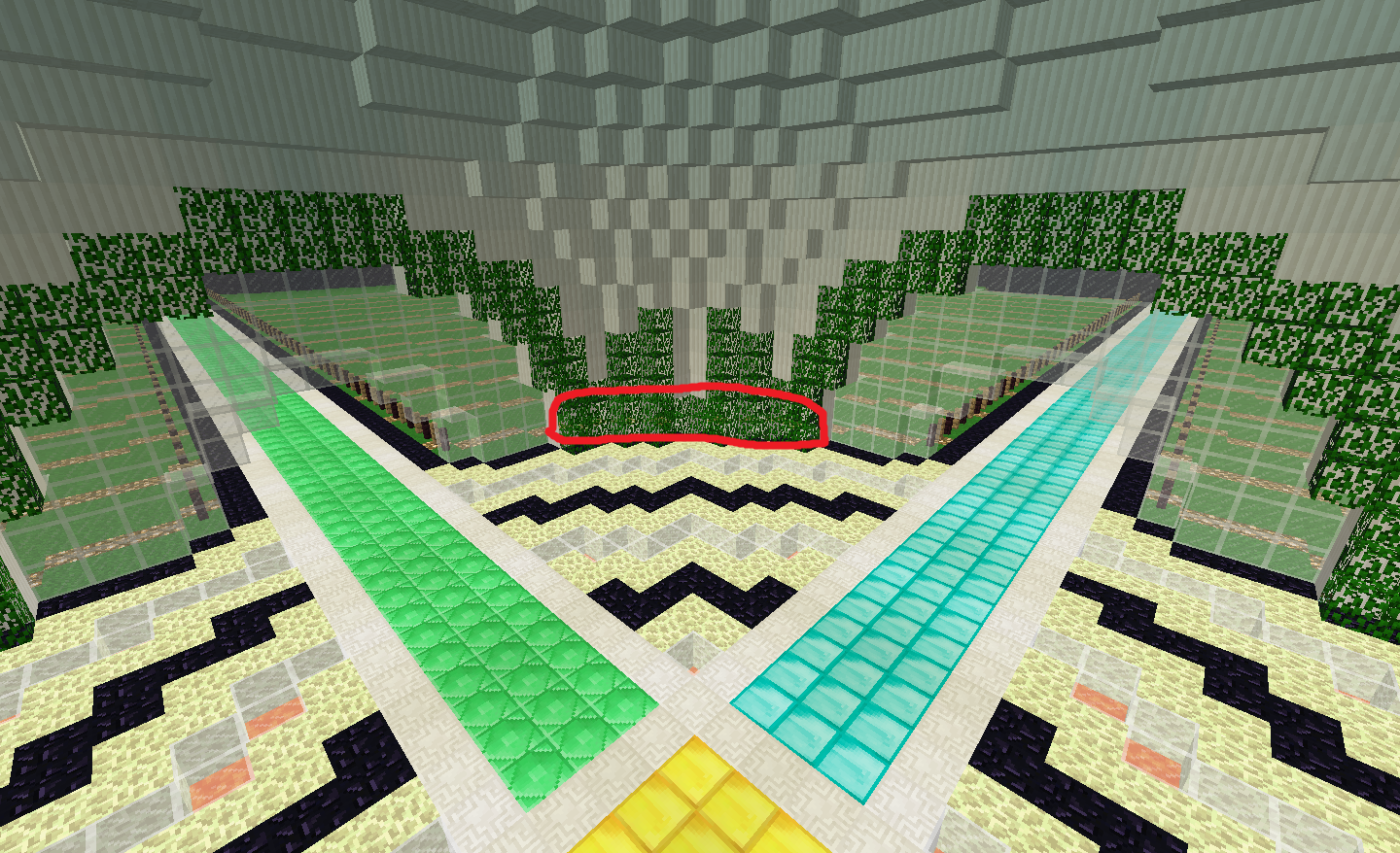 I was Creating the spawn for my server and i had an idea of placing leaves on the quartz pillar and it started looking nice but then i noticed that from certain angles you could see trough the pillar outside