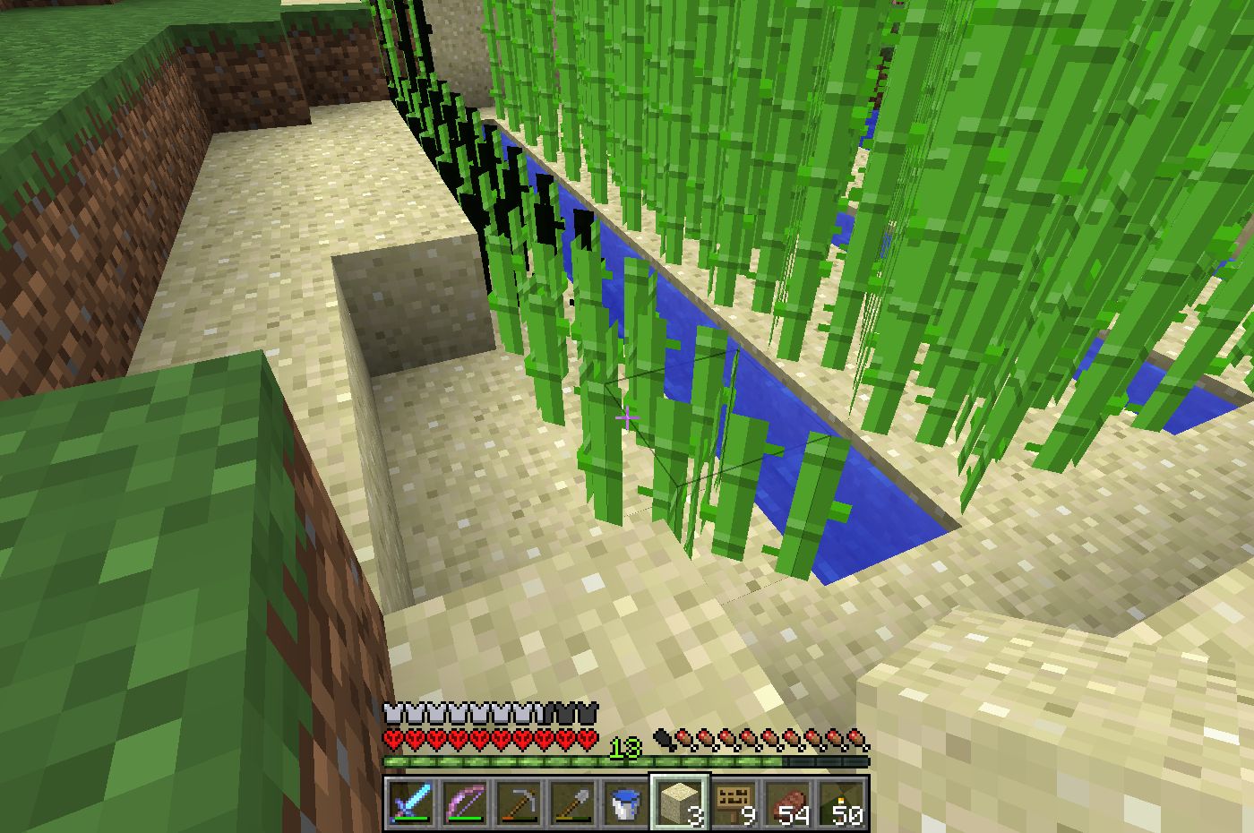 When a stalk of sugar cane (any height) is next to a block, the texture for the cane is incorrect. Removing the block causes the texture to become normal.