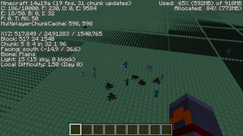 "Maybe the hostile mob spawning area is identical with the slime spawning area (slime chunks)"