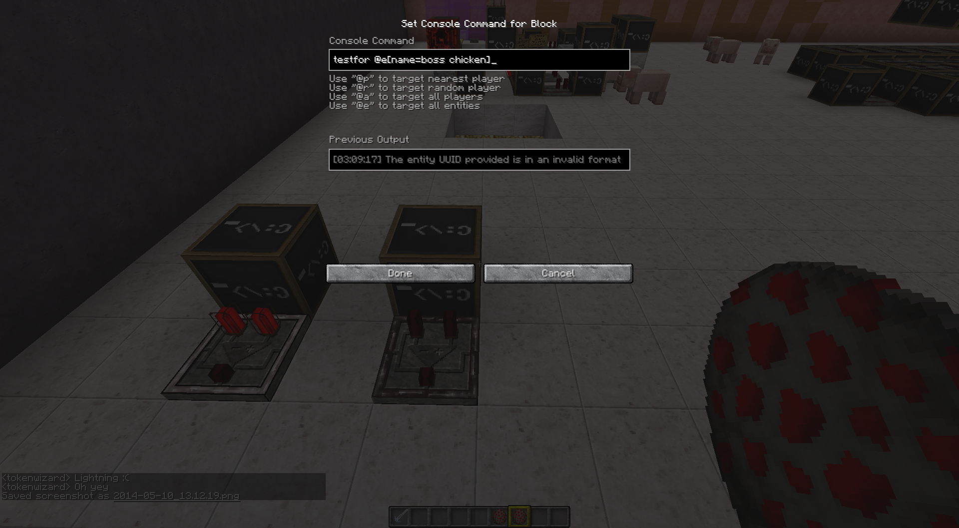 I grabbed 2 chicken spawn eggs and named 1. bosschicken & 2. boss chicken
