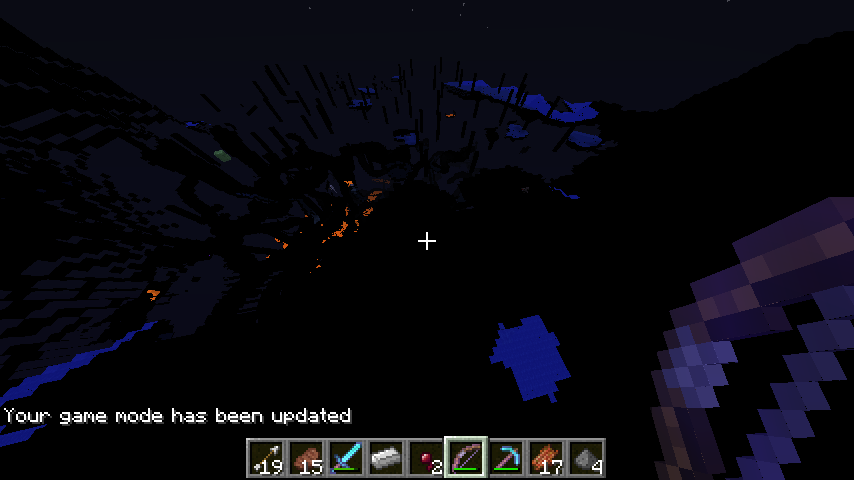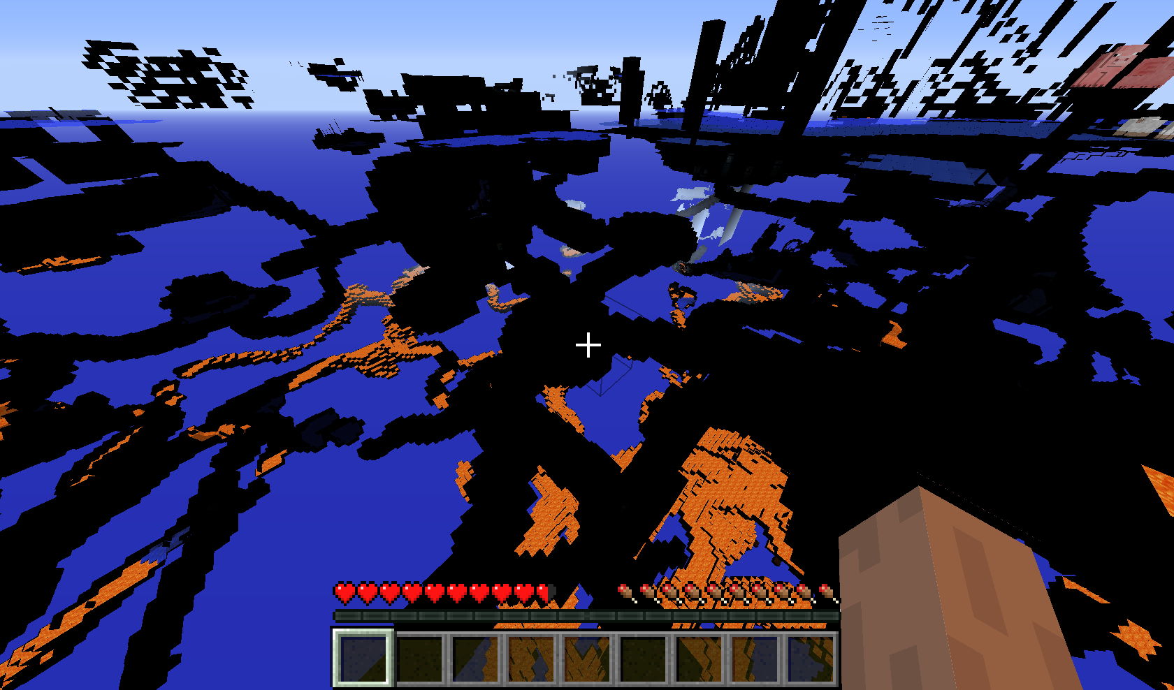 I was playing minecraft, a survival world, suddenly a creeper explode and all the world turn black, i could only see lava and water pools, black shadows and some mobs.
