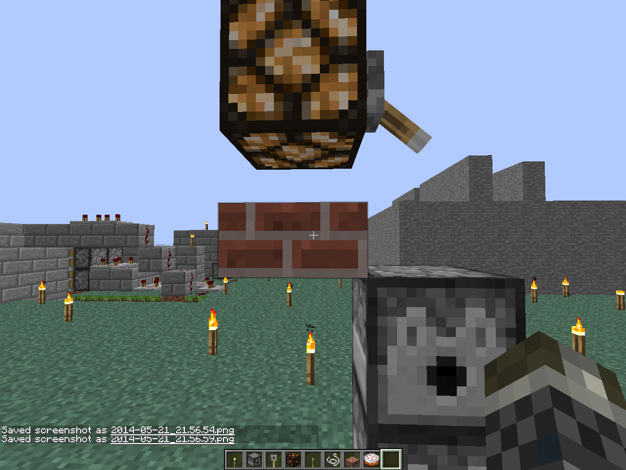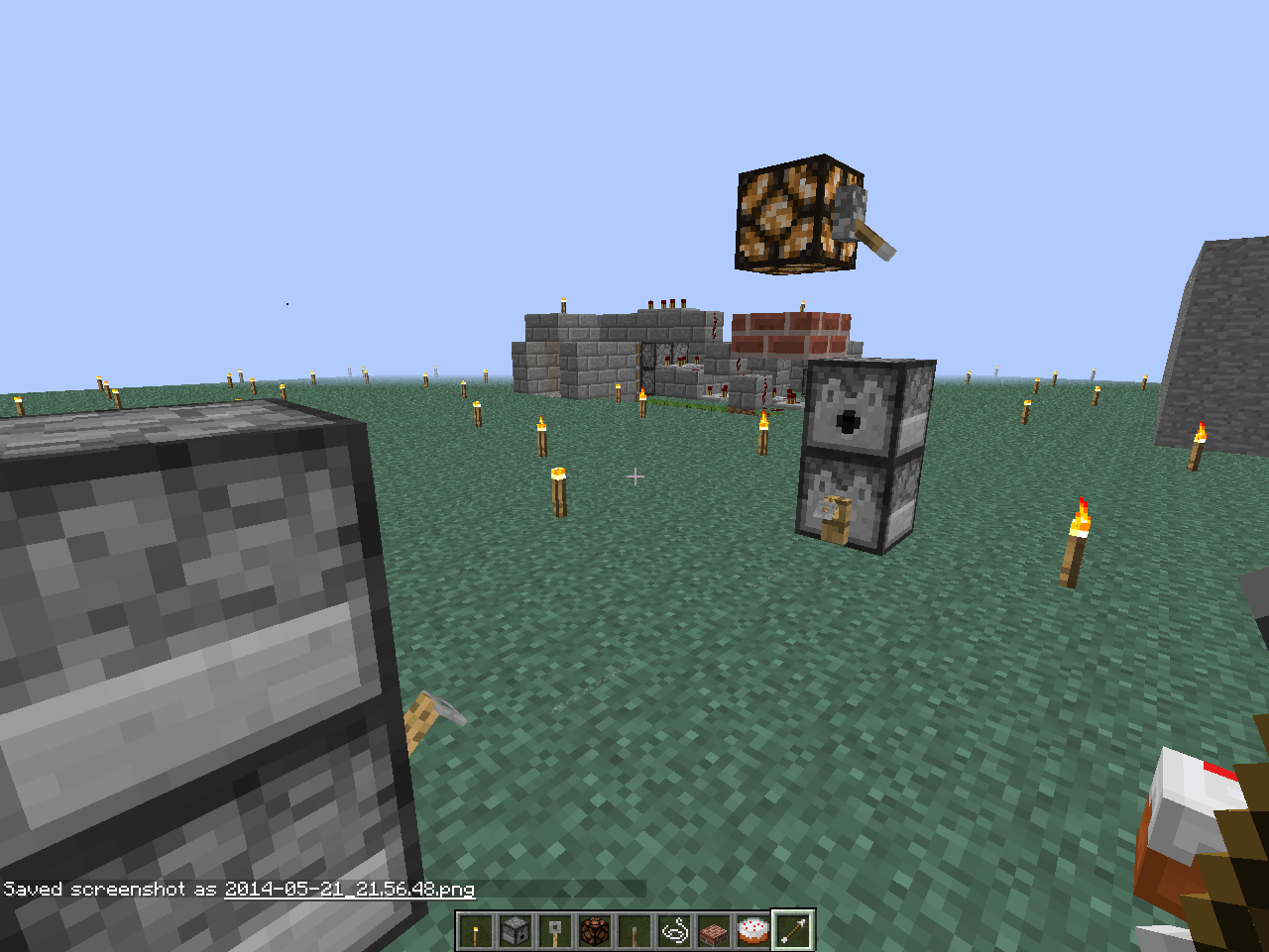 1. Set up two dispensers (one on top of the other and both facing the same direction) and then, with a five block gap, place another two dispensers facing the first two.