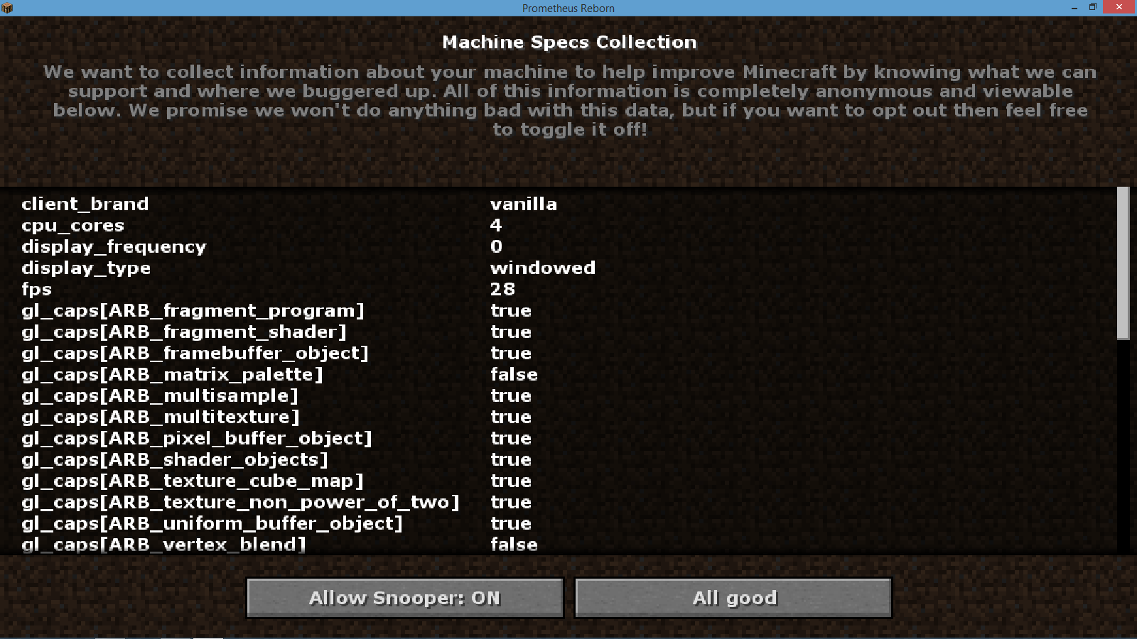 Most Minecraft players have some sort of hacked client nowadays. However, Minecraft is unable to detect that this is a hacked client and brands it "vanilla".