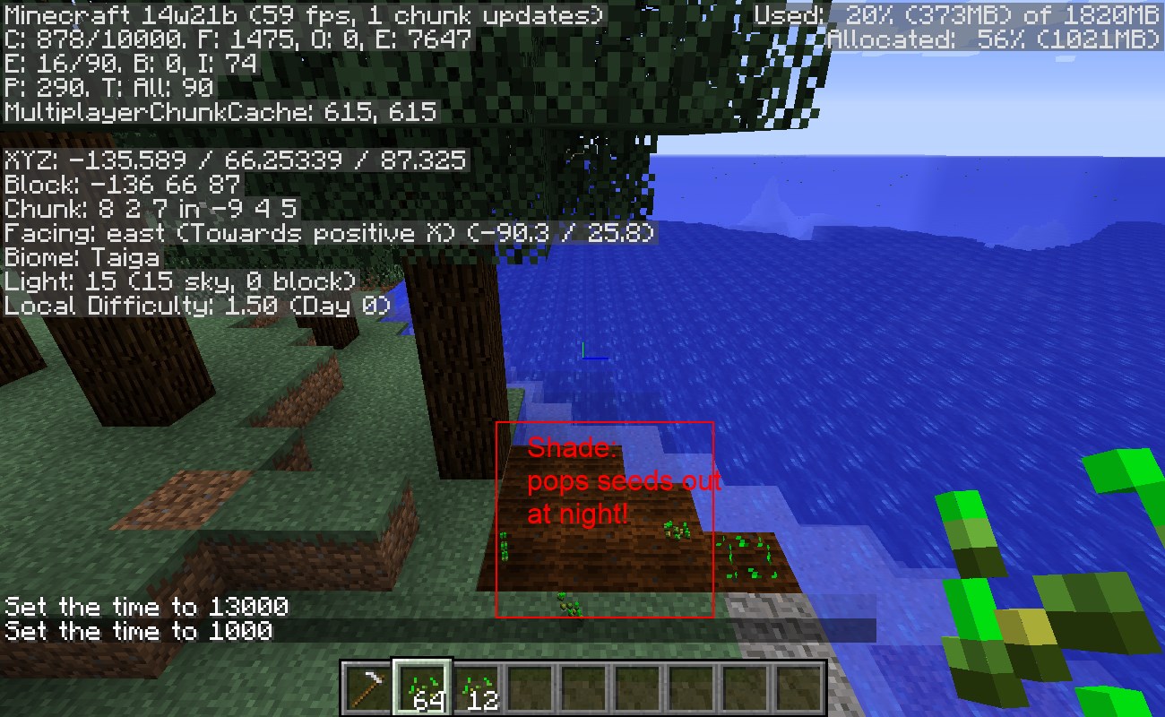 Picture shows jumping seeds from blocks at daylight level 14 (standing on 13).