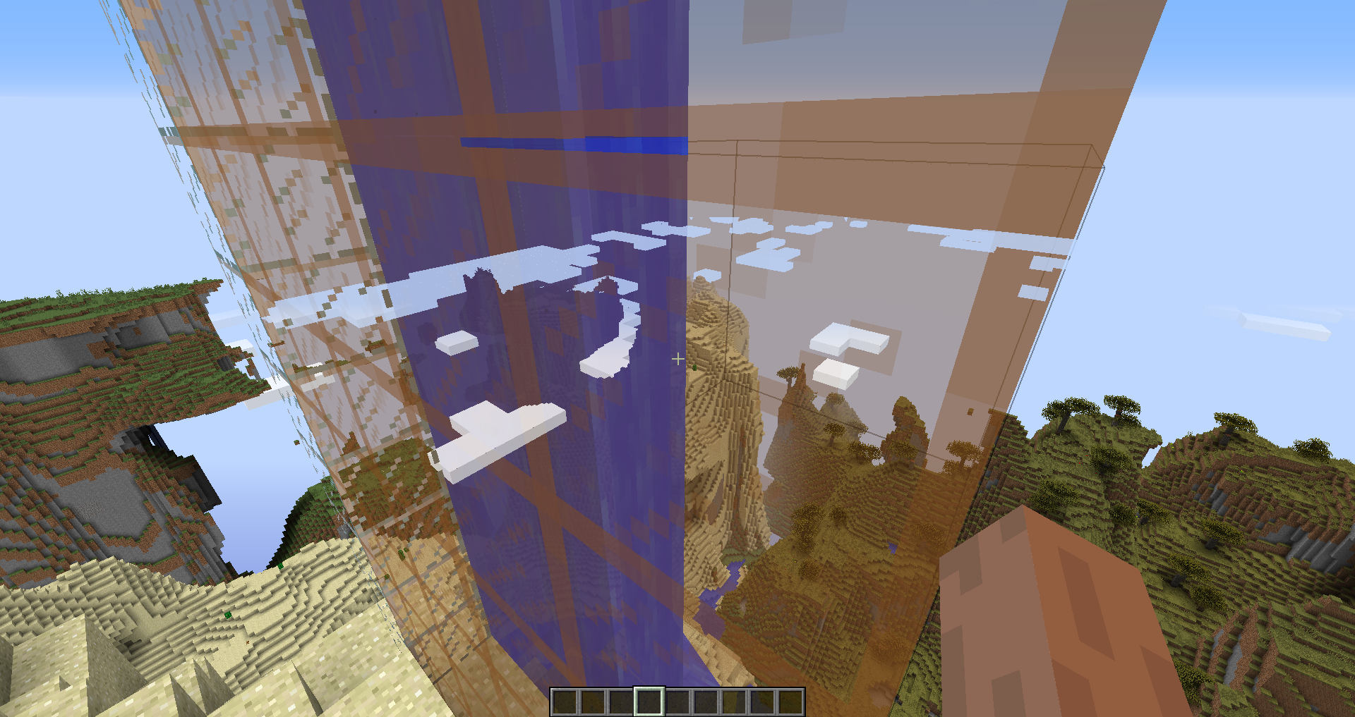 When you build a Colored Glass above a Cloud it looks like the glass is inside the cloud or the clouds look bugged , and same if you build water .