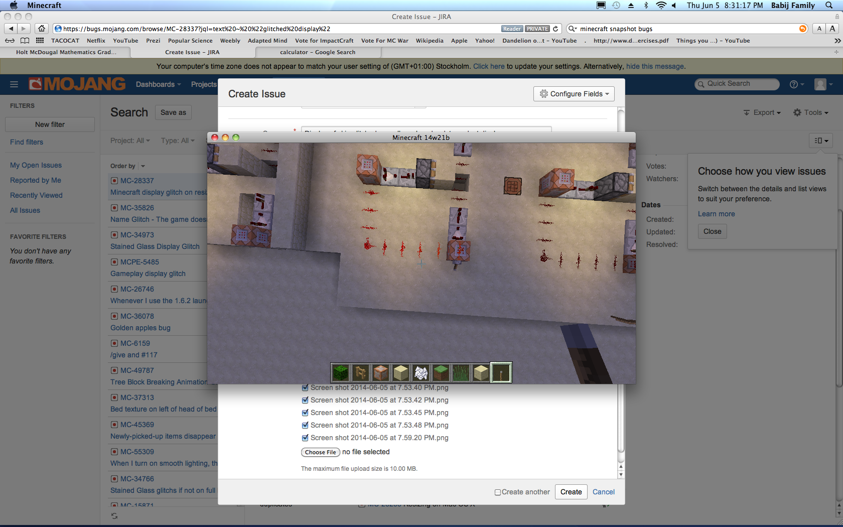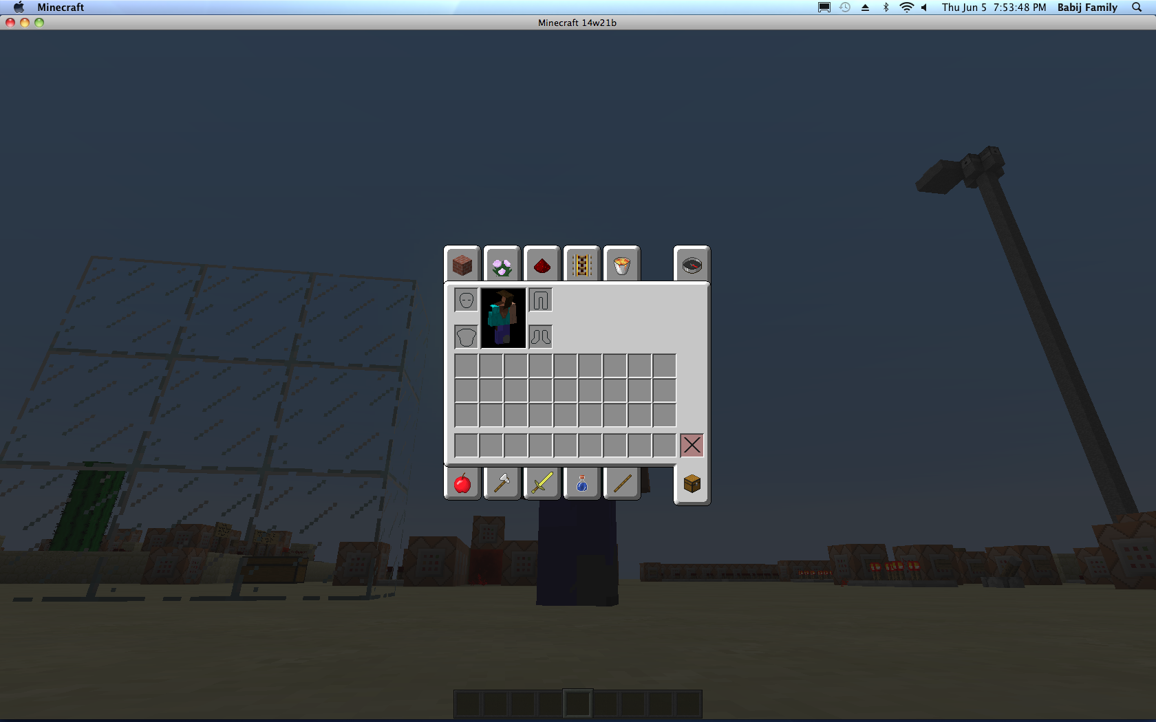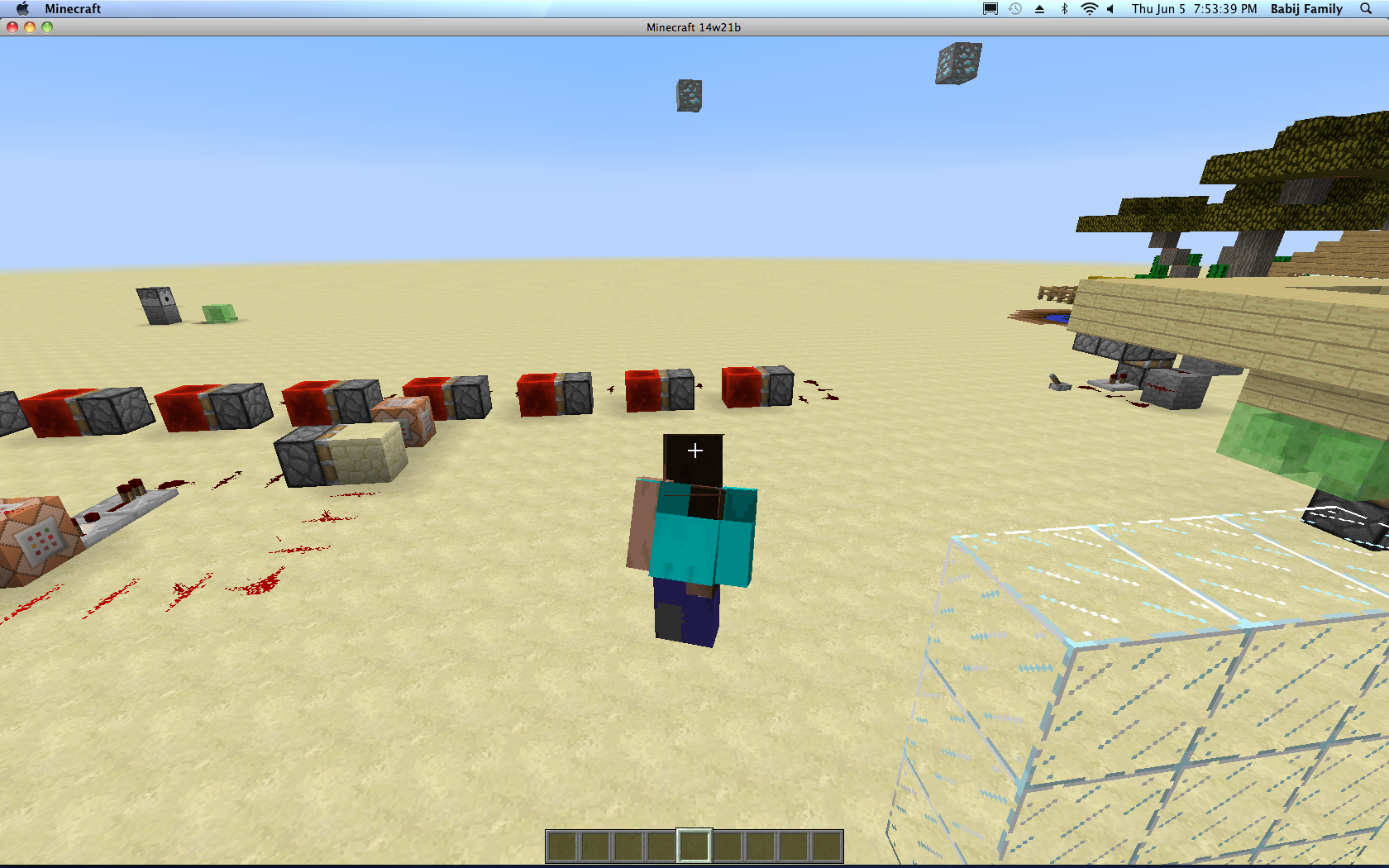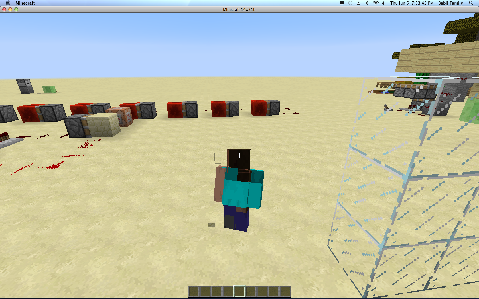 When I ran minecraft in version 14w21b my skin had changed back to the default steve skin, this is happens a lot though it is not the bug I am reporting. The steve skin had glitched, the textures were in the wrong place and sometimes not even there, like on the side of the head. As well as this redstone that had been placed in a line had flipped 90 degrees though it still had the texture that redstone placed in a line has the redstone still functions as normal however. Please note that the screenshots attached are not of my regular minecraft skin but are of the glitched steve skin. Upon relogging my skin went back to normal though the redstone did not change (even when the blocks around it were updated). Placing redstone results in the same glitch, but not when the redstone goes around a corner
