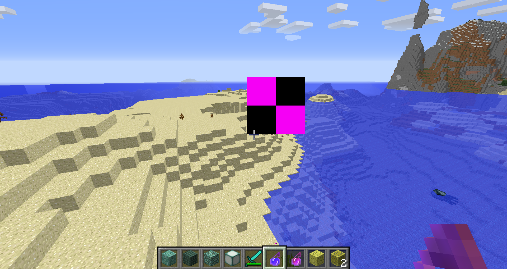 If you trow splash potions, you can't see the potions but only squares with black and pink.
