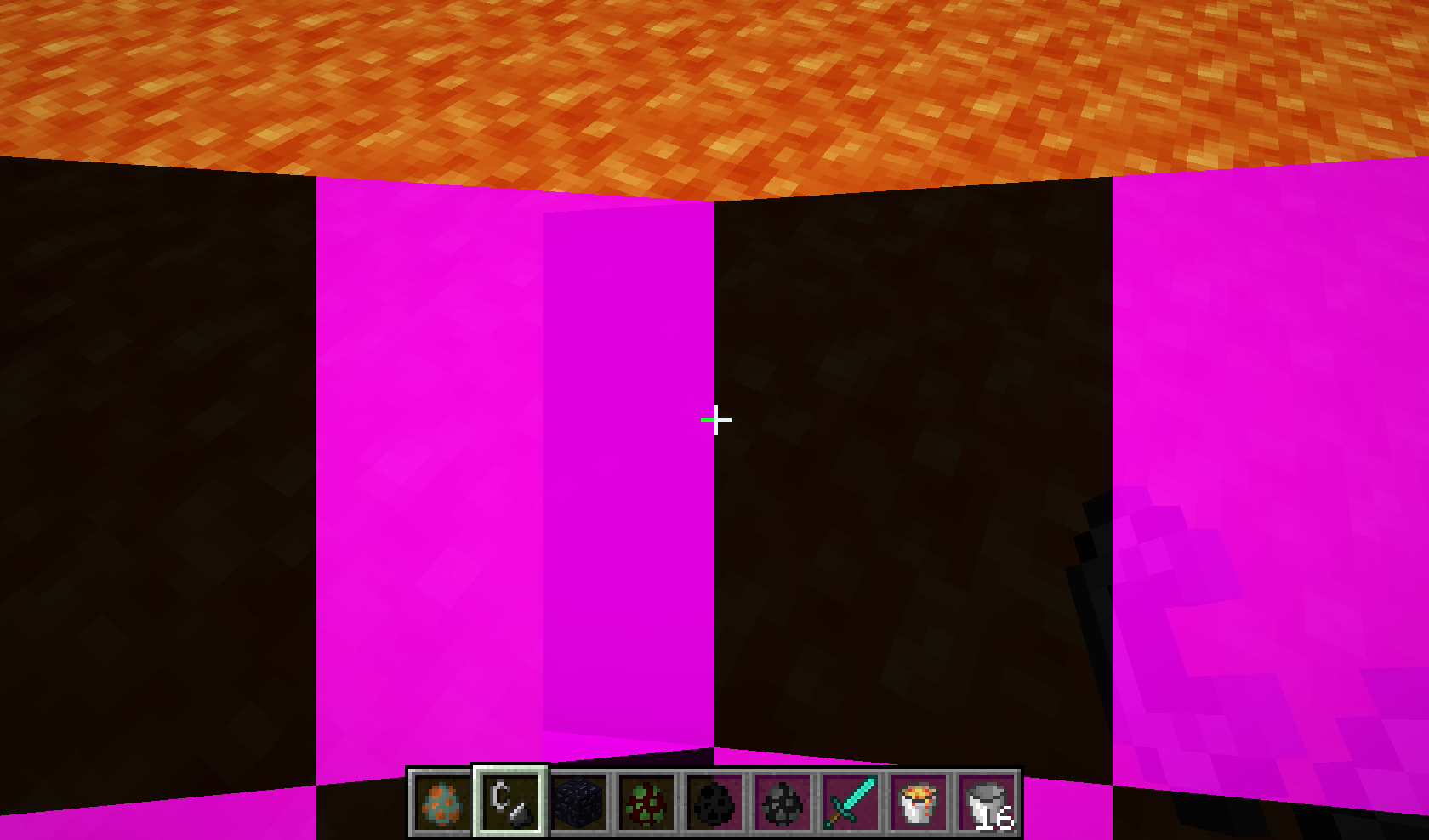There is bug that seems to happan while you in lava , It change your view with unknown texture (pink/black) .