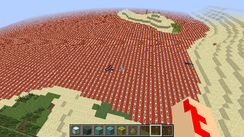 I was playing on a newly generated world called "25a", and I found this. It is actually water, but with a TNT texture... It goes away when I use a resource pack