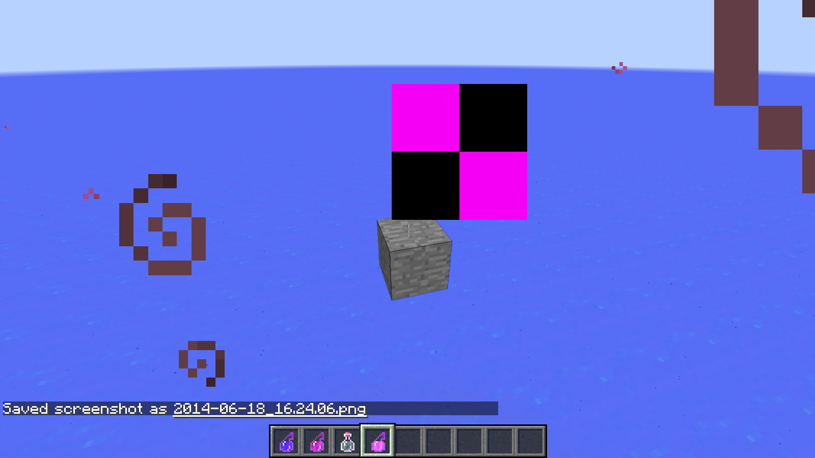 When any kind of splash potion is thrown/ used, it shows up as square with pink and black.