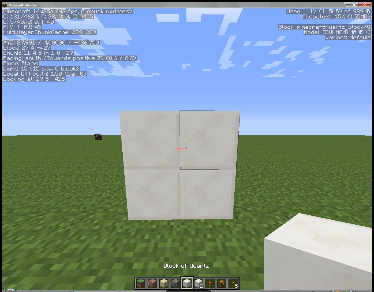 3) Press F3 and look at the blocks. As you can see in the top right corner, the blocks are the same : minecraft:quartz_block/0