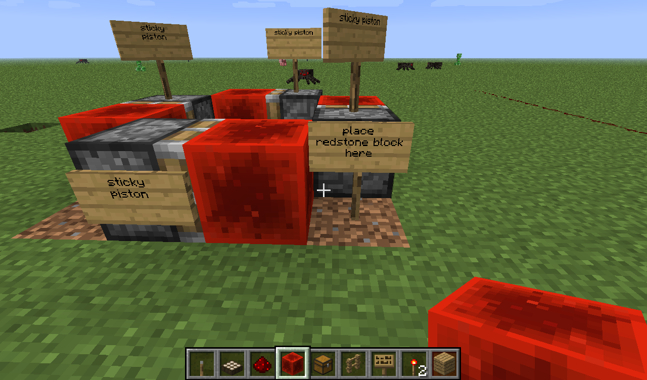 when you place a redstone block as shown on the screenshot,something weird happen. It's the first redstone block pass trough the other one.