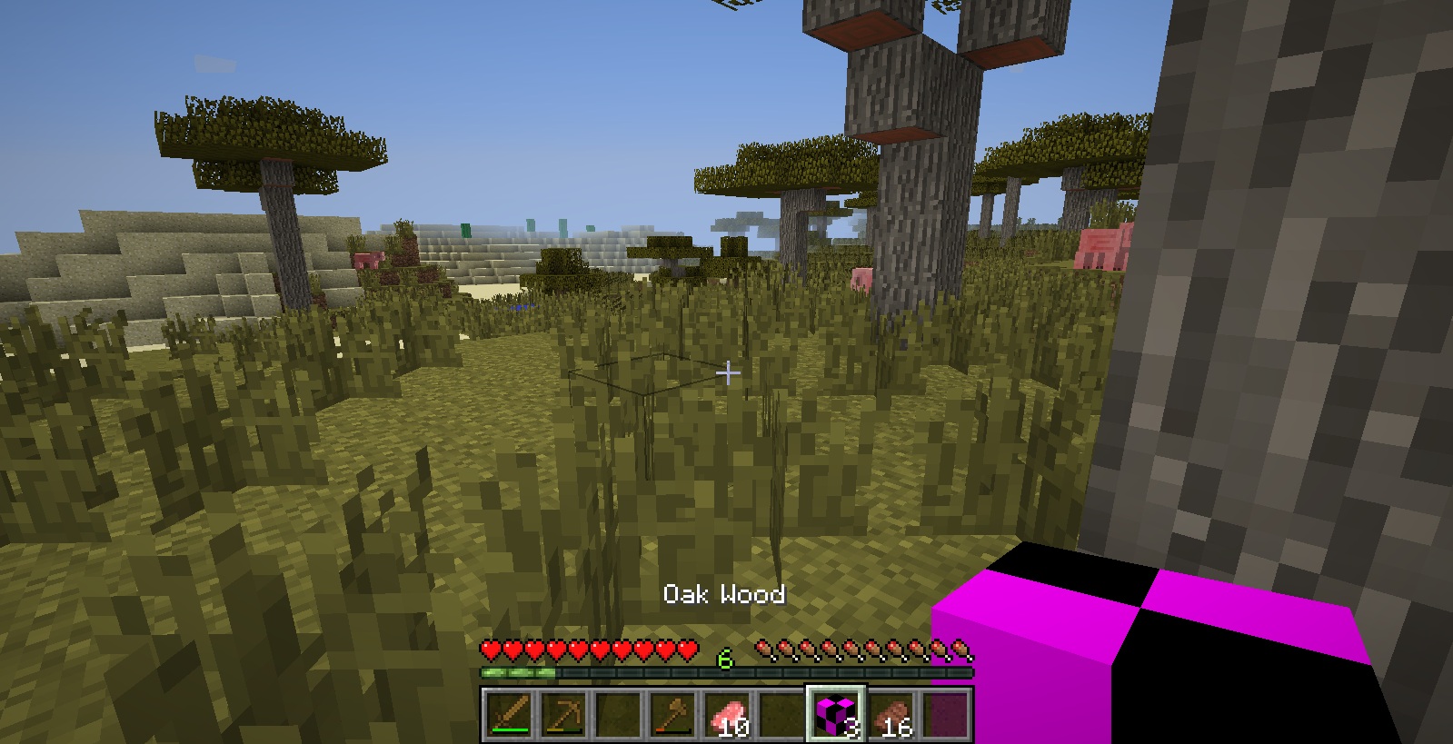 When I chopped down an Acacia tree, instead of acquiring an Acacia log, I received an untextured block named oak wood. When attempting to place the block the game crashed. The untextured oak wood could also not be crafted into any item.
