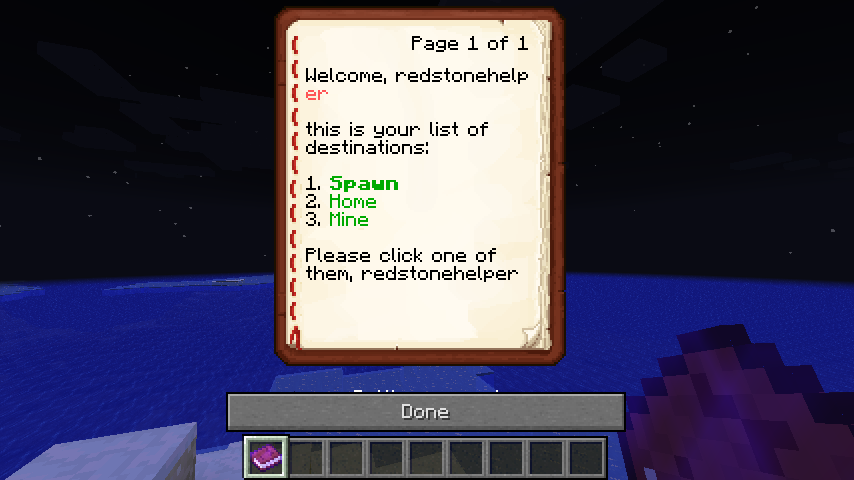 /give @p written_book 1 0 {title:"Getting around",author:"Searge",pages:["{text:\"Welcome, \",extra:[{selector:\"@p\",color:red},{text:\"\n\nthis is your list of destinations:\n\n\"},{text:\"1. \",color:orange,extra:[{text:\"Spawn\",color:dark_green,bold:true}],hoverEvent:{action:show_text,value:\"This worlds spawn point\"},clickEvent:{action:run_command,value:\"/tp @p -305 56 169\"}},{text:\"\n\"},{text:\"2. \",color:orange,extra:[{text:\"Home\",color:dark_green}],hoverEvent:{action:show_text,value:\"Your main base\"},clickEvent:{action:run_command,value:\"/tp @p 5 56 96\"}},{text:\"\n\"},{text:\"3. \",color:orange,extra:[{text:\"Mine\",color:dark_green}],hoverEvent:{action:show_text,value:\"The old mines\"},clickEvent:{action:run_command,value:\"/tp @p 15 56 -318\"}},{text:\"\n\nPlease click one of them, \"},{selector:\"@p\",color:red}]}"]}Then open the book and, if your username is sufficiently long, observe how only the part of your username that wrapped into a new line will be colored. See attached screenshot.