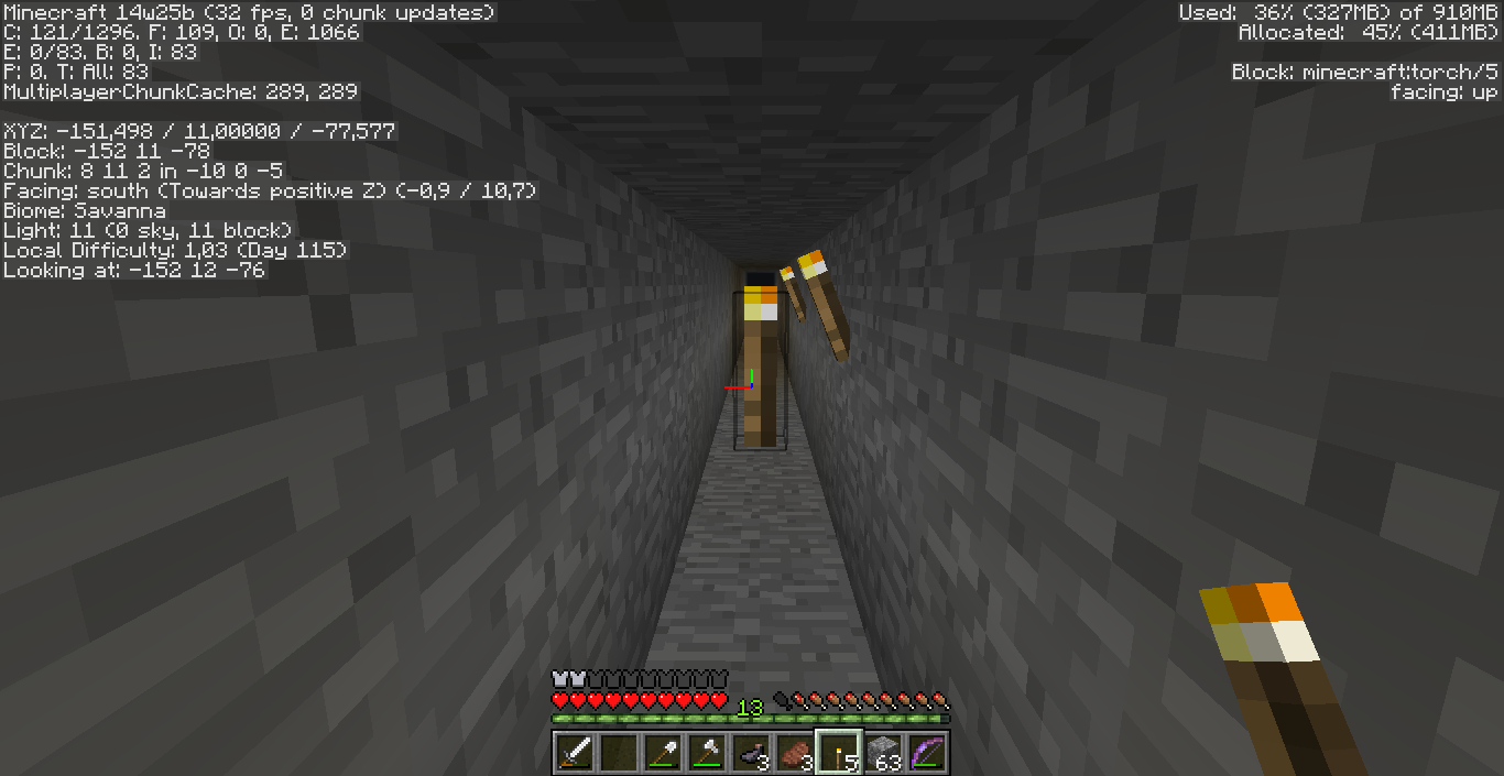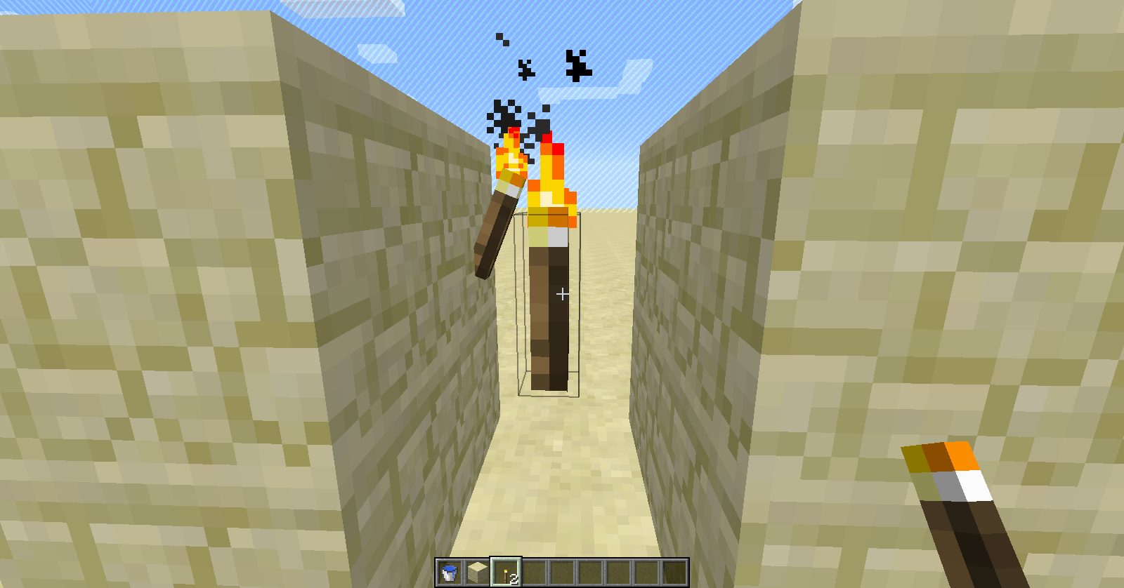 in survival, is possible to place torches of damage 5 on air. if you try to place a torch on another torch it will look like this screenshot