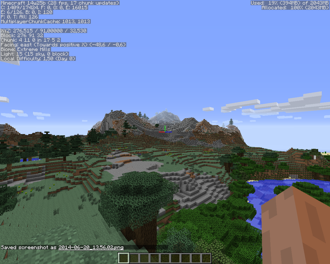 As You can see the 14w25b loaded much more chunks at the same rendering distace (max). [in the settings, both are 16 chunks. In real it's not.] And it uses less memory.... ????— **???