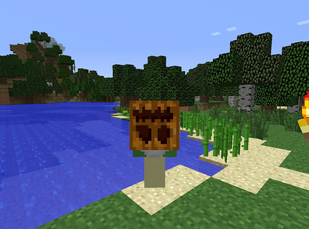 I was playing Minecraft when I decided to put a Pumpkin on my head and dance around for literally no reason. Then once I put the Pumpkin on my head it was huge and upside down. I don't know how this could have possibly happened.