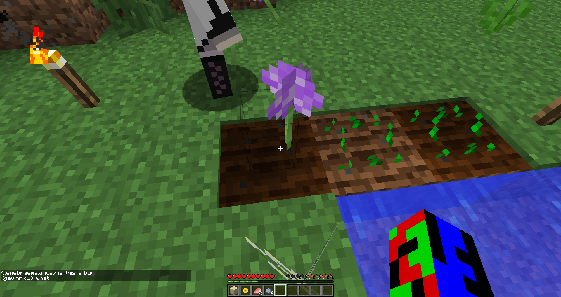 you can place flowes of all types on hoed farm land and the hit box is a bit off set as well when you do it. this was on a server by the way