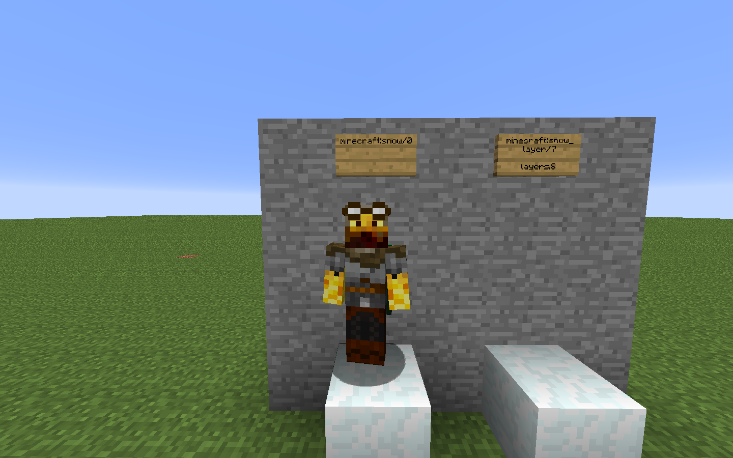 When layering snow blocks to the size of a full block (minecraft:snow_layer/7 layers:8), it is possible to walk through the snow block.